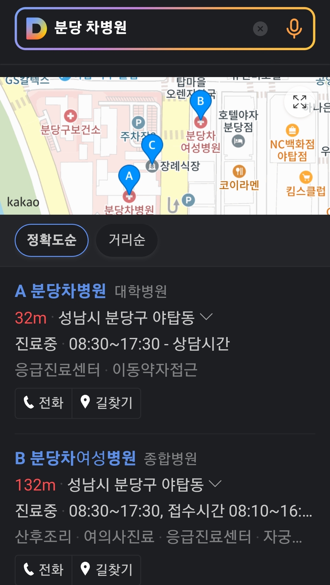 다음검색 : 분당 차병원 [카카오맵] 분당차병원