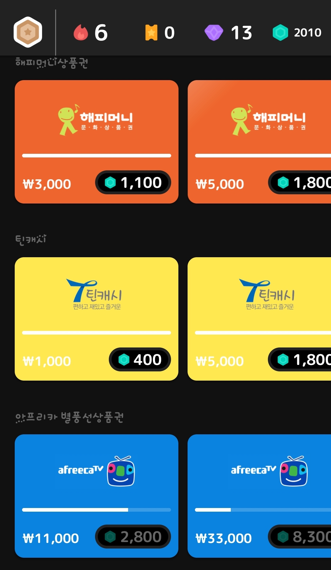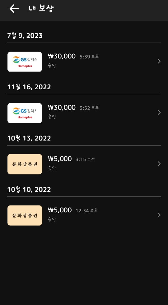 상품권이나 캐쉬 등으로