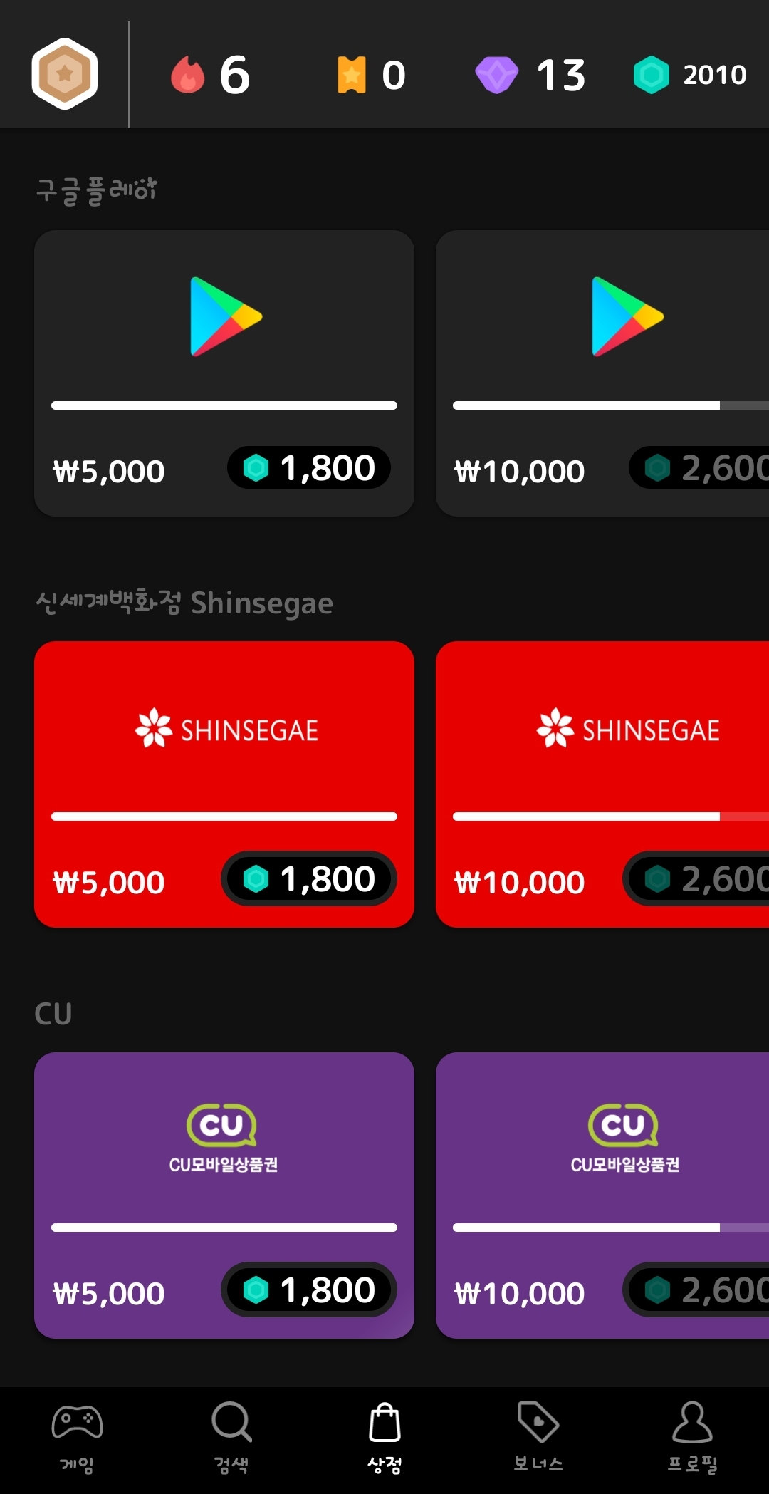 열심히 게임해서 쌓인 포인트는