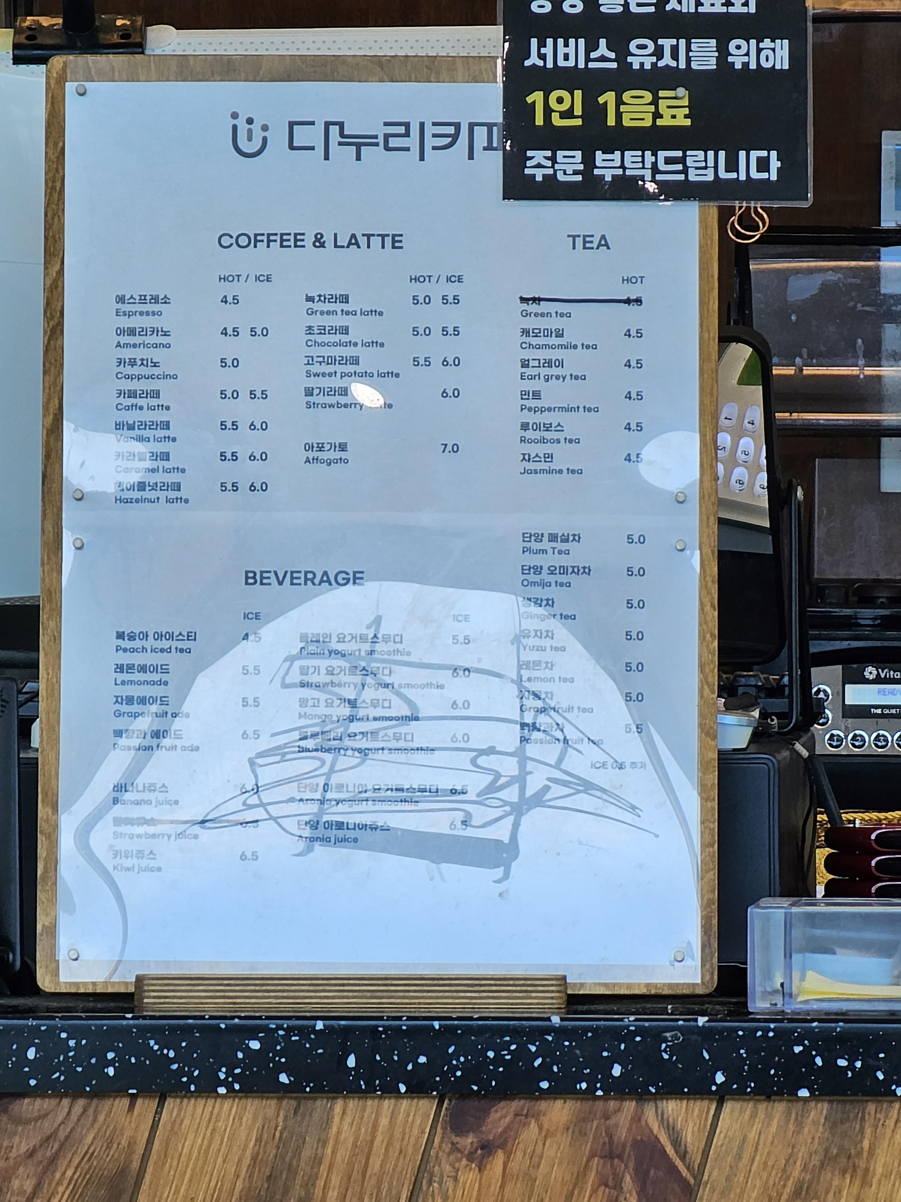 다누리 카페 메뉴판 뷰 맛집이었네!