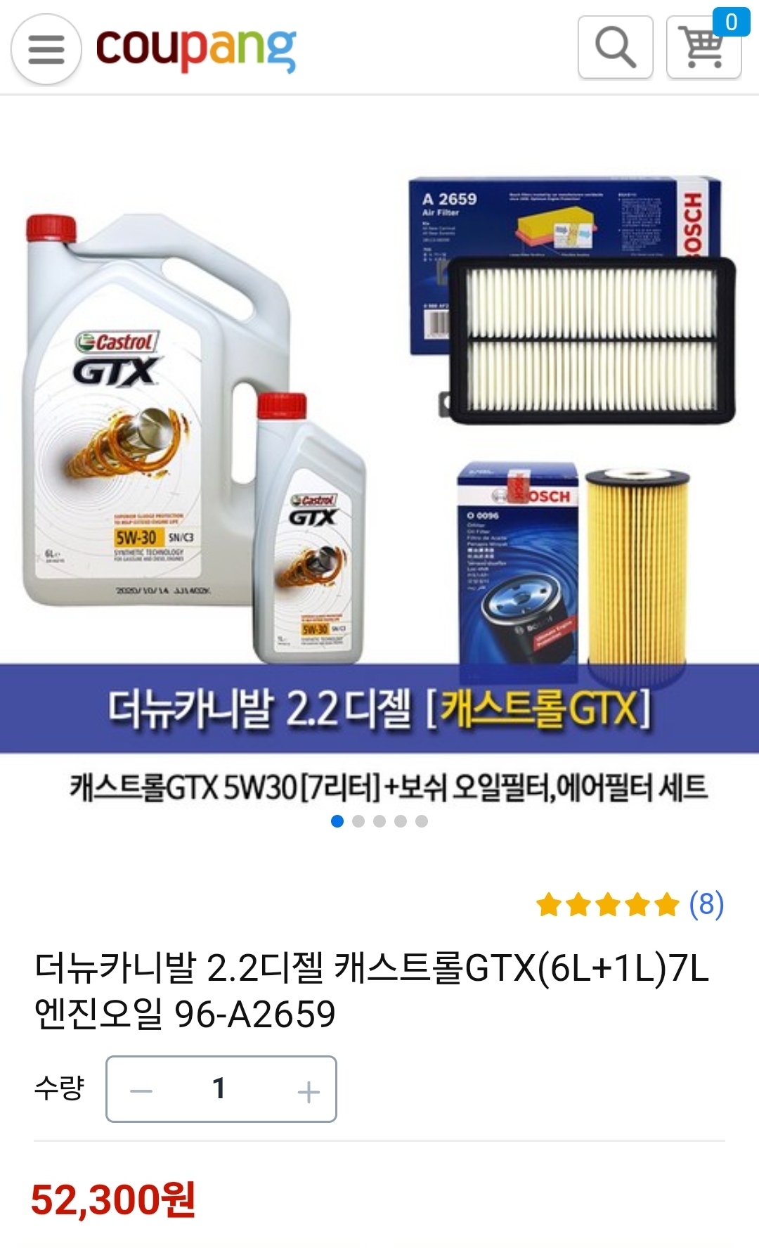 https://link.coupang.com/a/cybyxv캐스트롤 GTX 5W30 올뉴카니발 더뉴카니발 디젤 합성엔진오일 패키지 세트 - 엔진오일세트 | 쿠팡