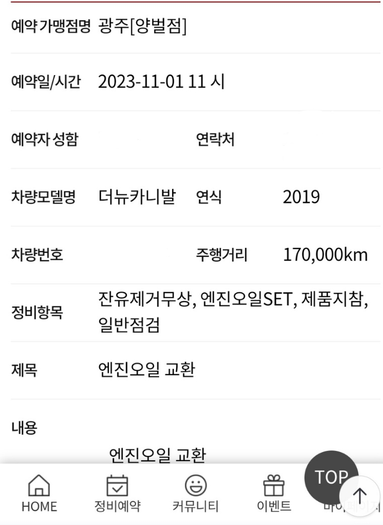 다시 예약해서 갈게요~ 😄😄😄😄엔진오일 교환 공임비 19,000원