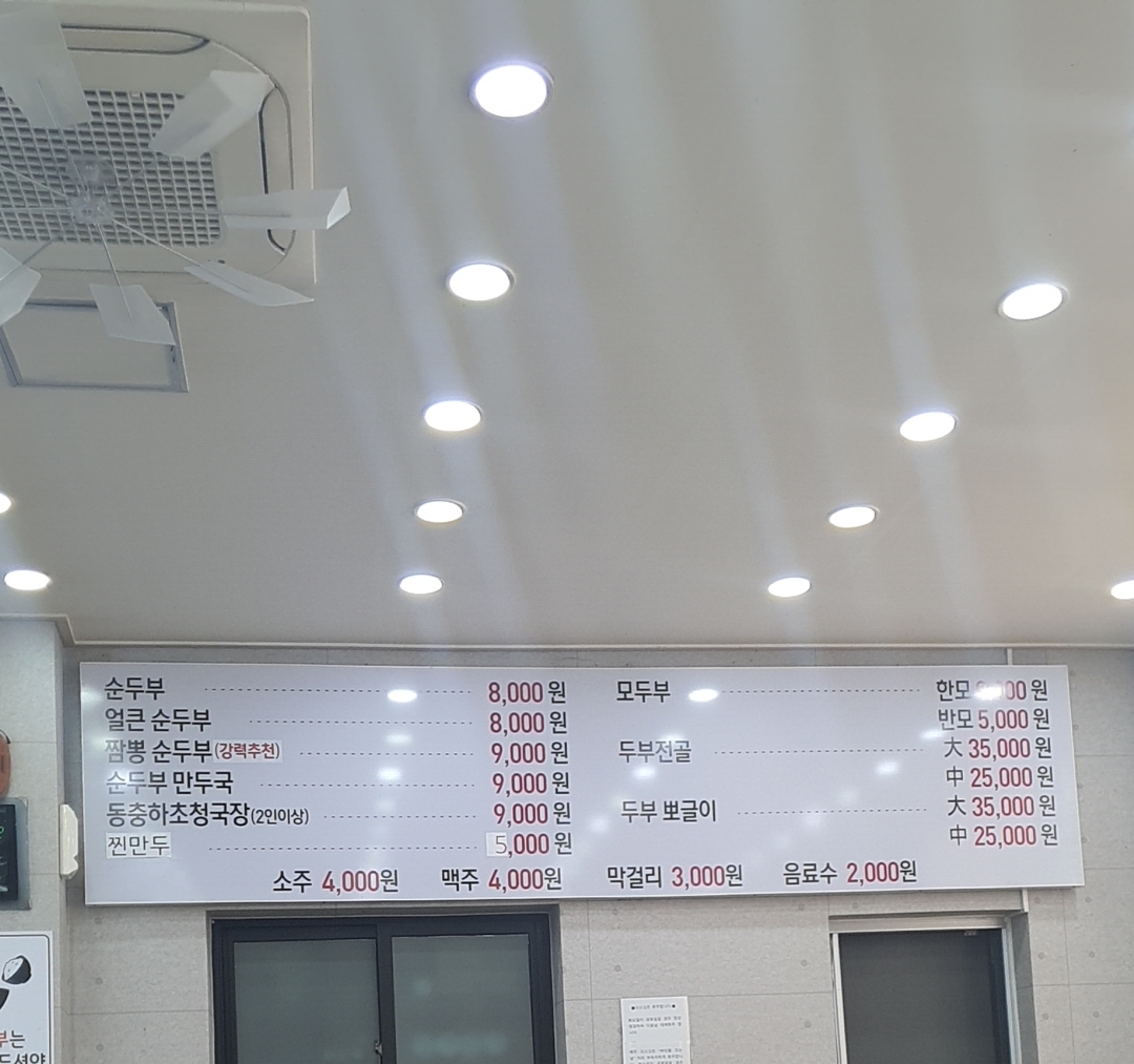 메뉴판 저는 짬뽕 순두부 (강력추천) 9,000원