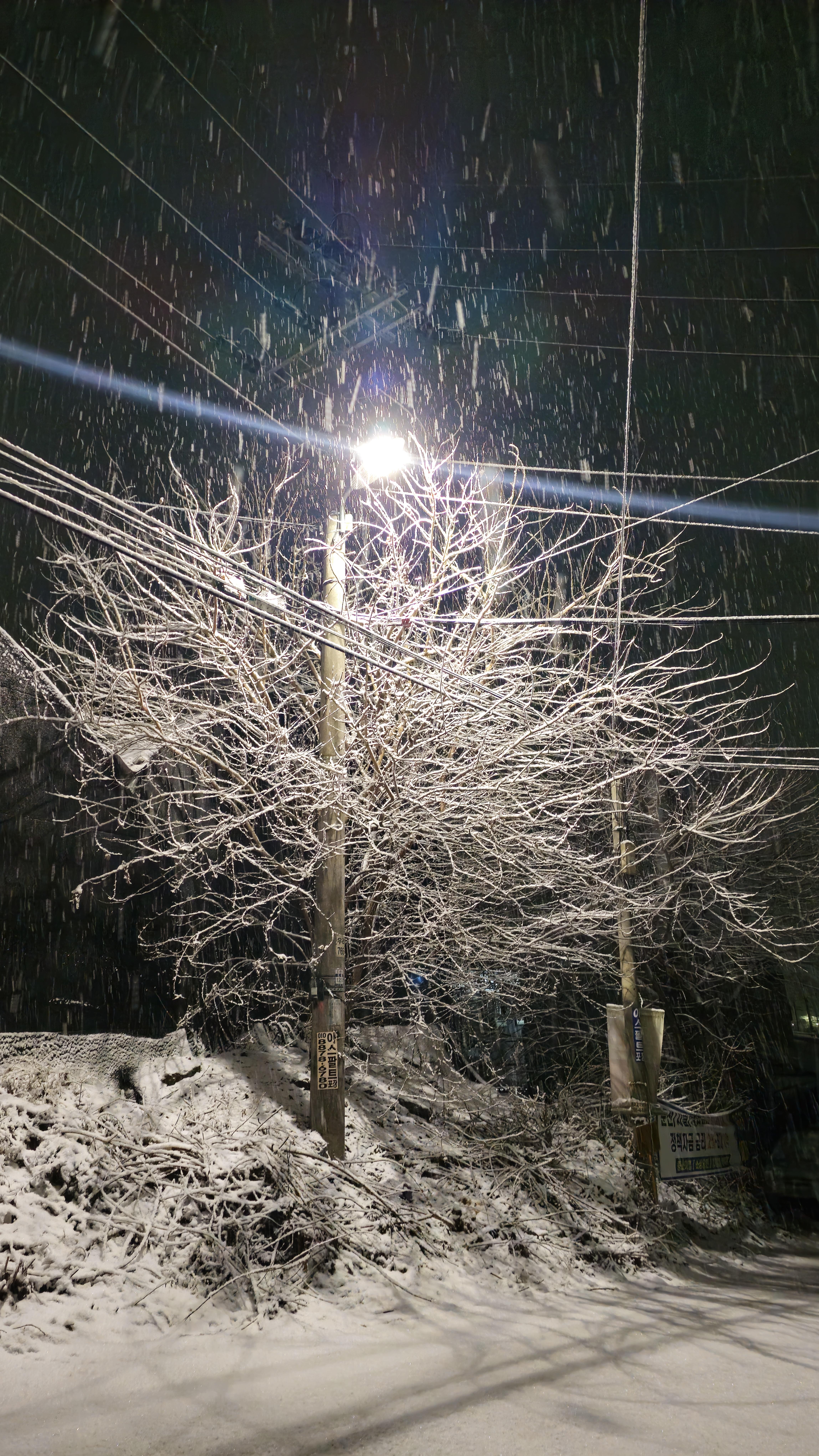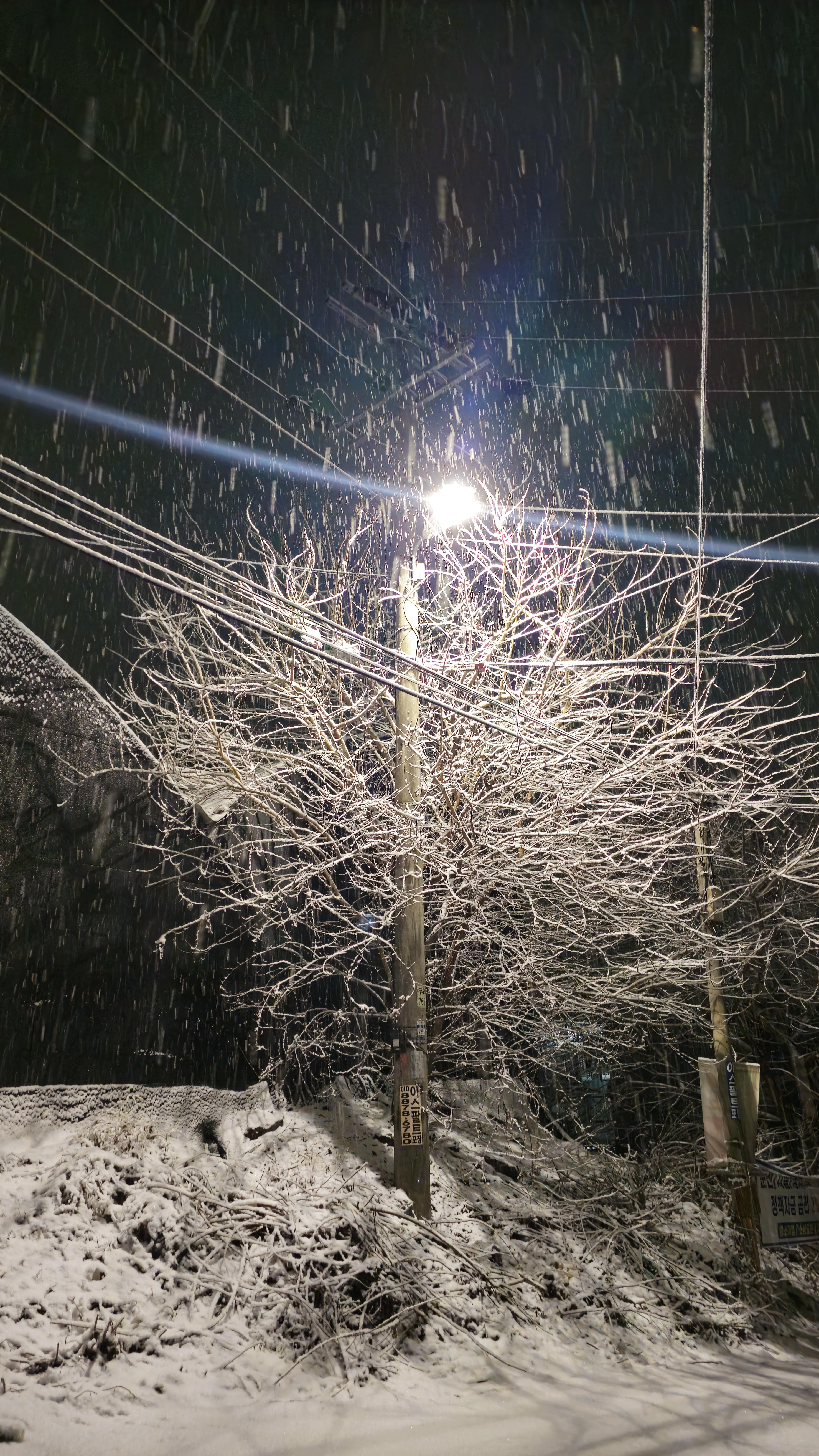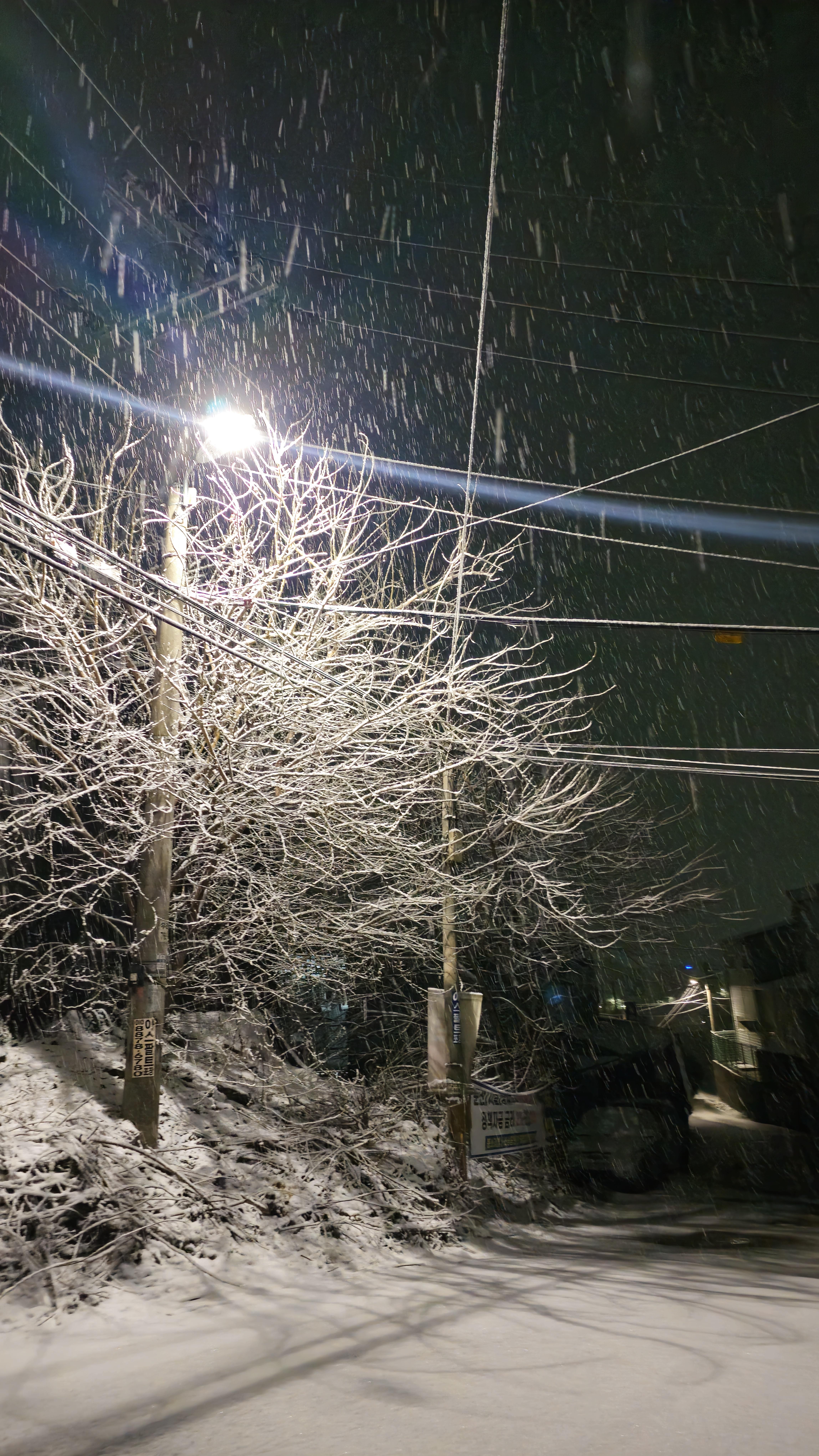 눈오는 밤 풍경