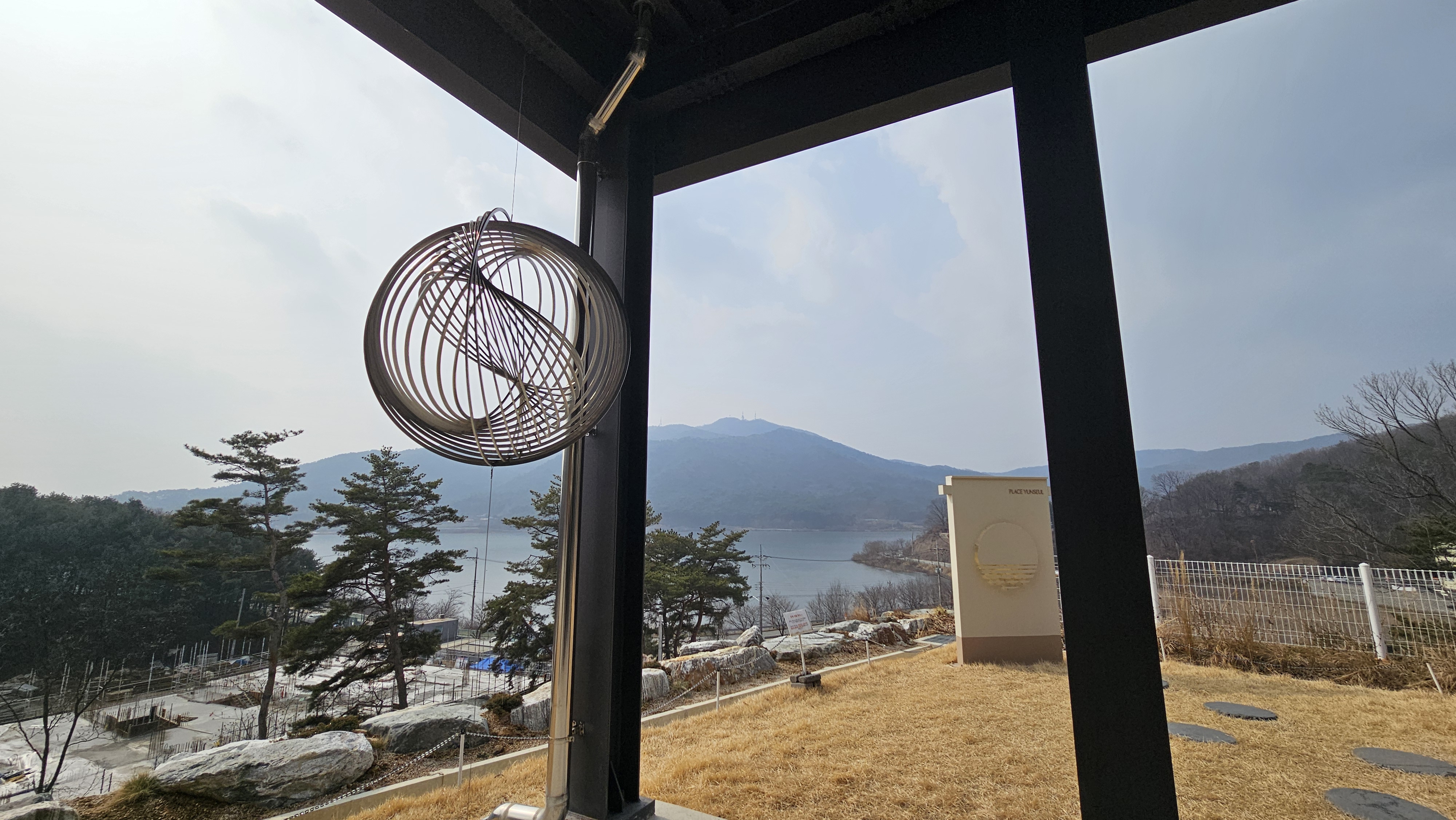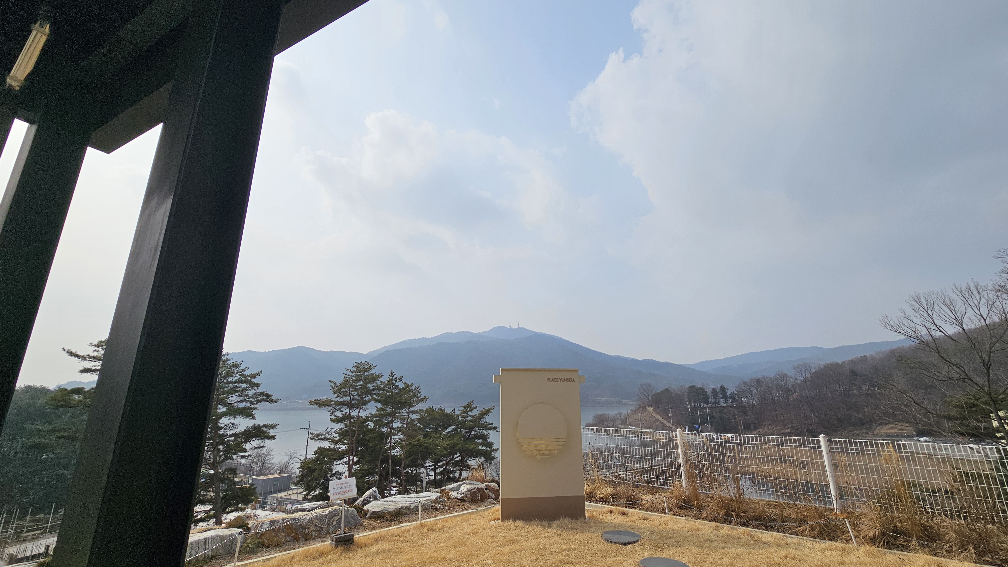 어머~ 뷰 좋다~산과 저수지가 보이는 이 뷰~