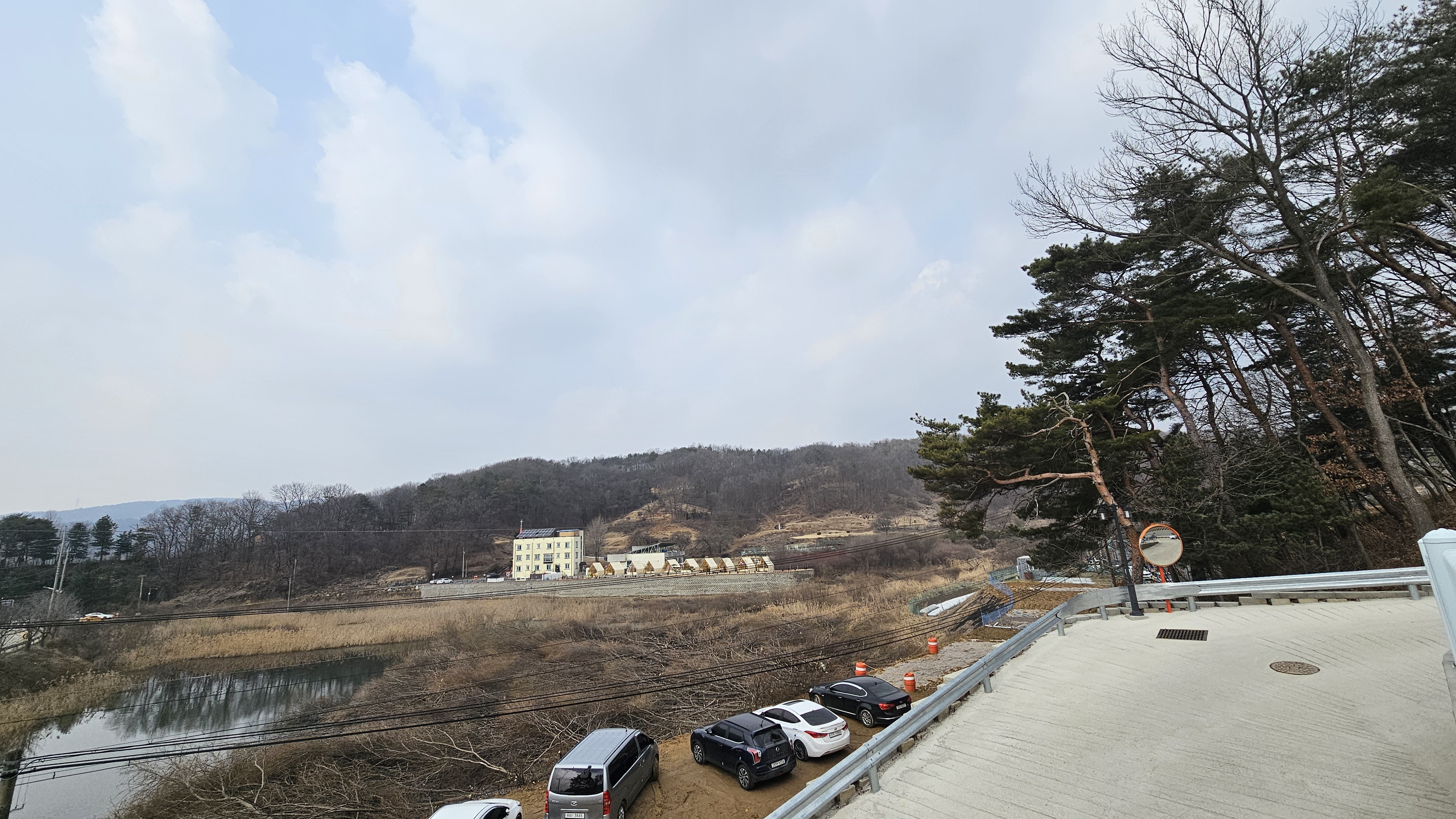 어머~ 뷰 좋다~산과 저수지가 보이는 이 뷰~