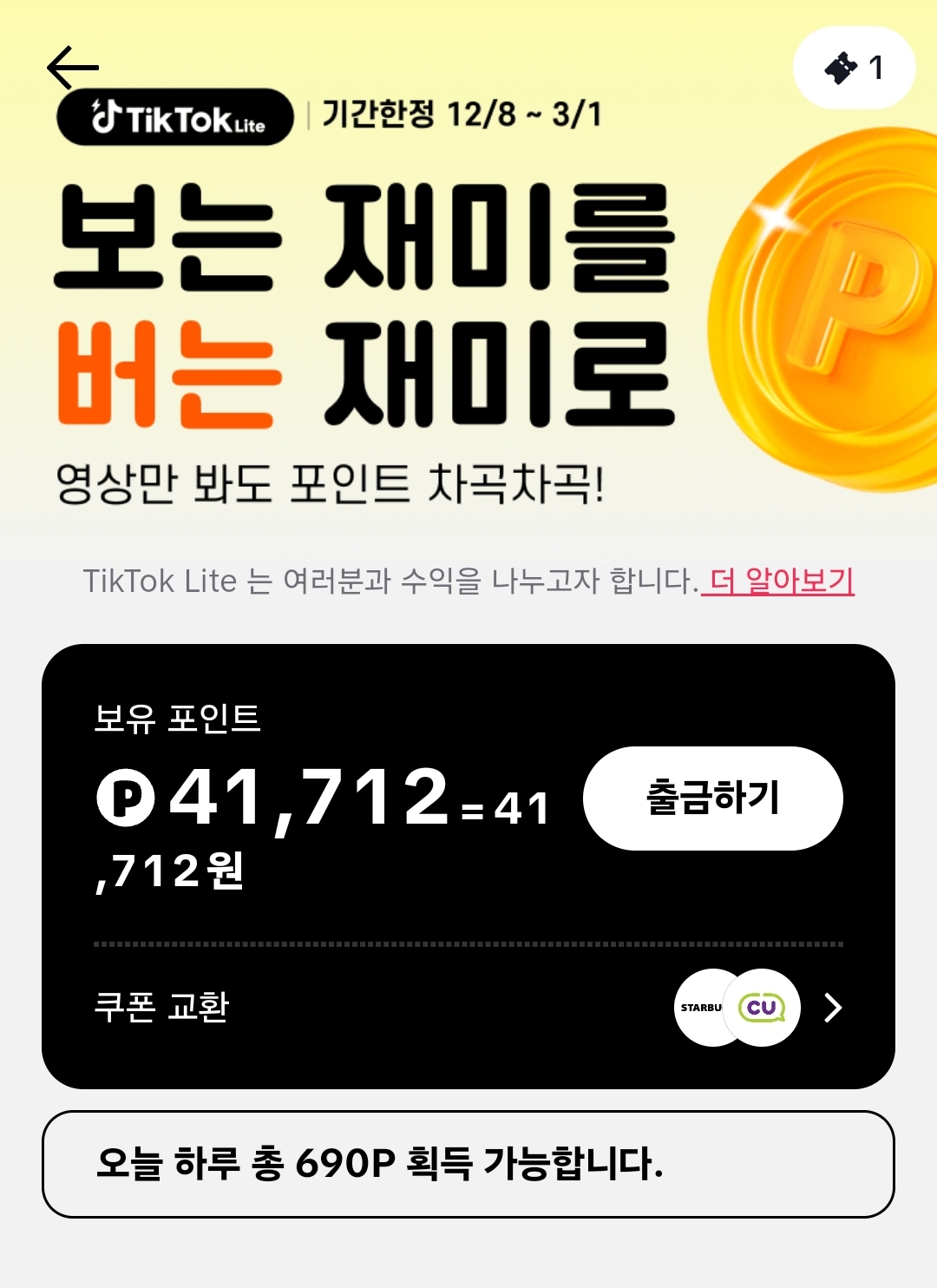 [기간 한정] 보는 재미로, 버는 재미로! 영상만 봐도, 좋아요만 눌러도, 검색만 해도 포인트가 차