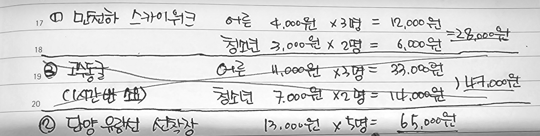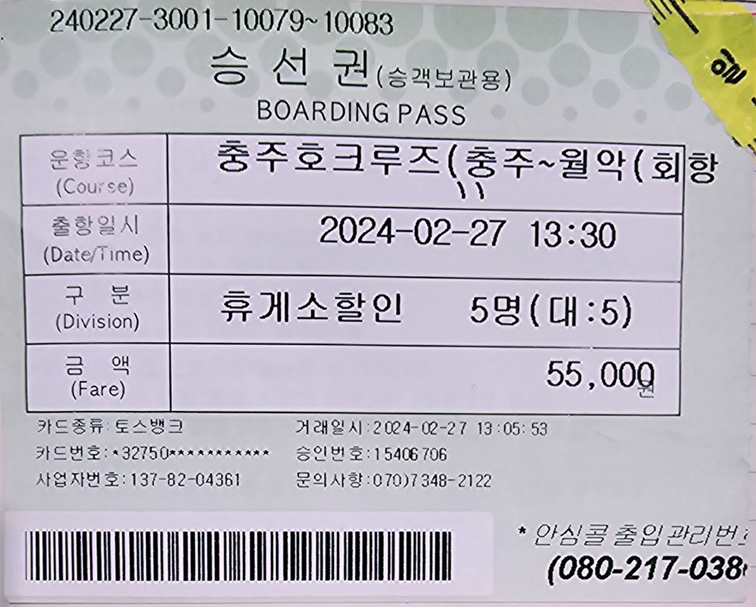 충주호 크루즈 티켓 처음에 예상했던 유람선 비용은