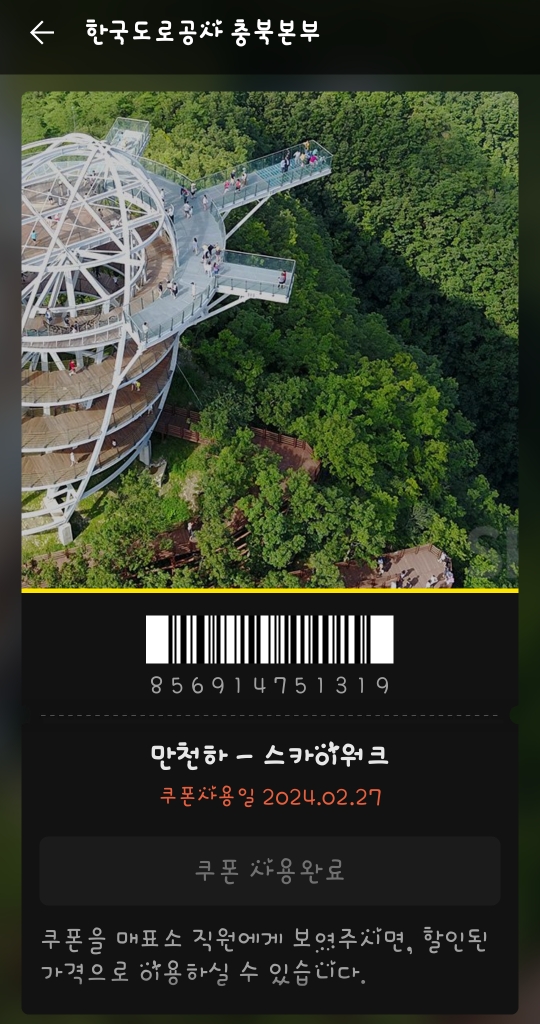 한국도로공사 충북본부 카카오채널 -> 쿠폰 발급받기!