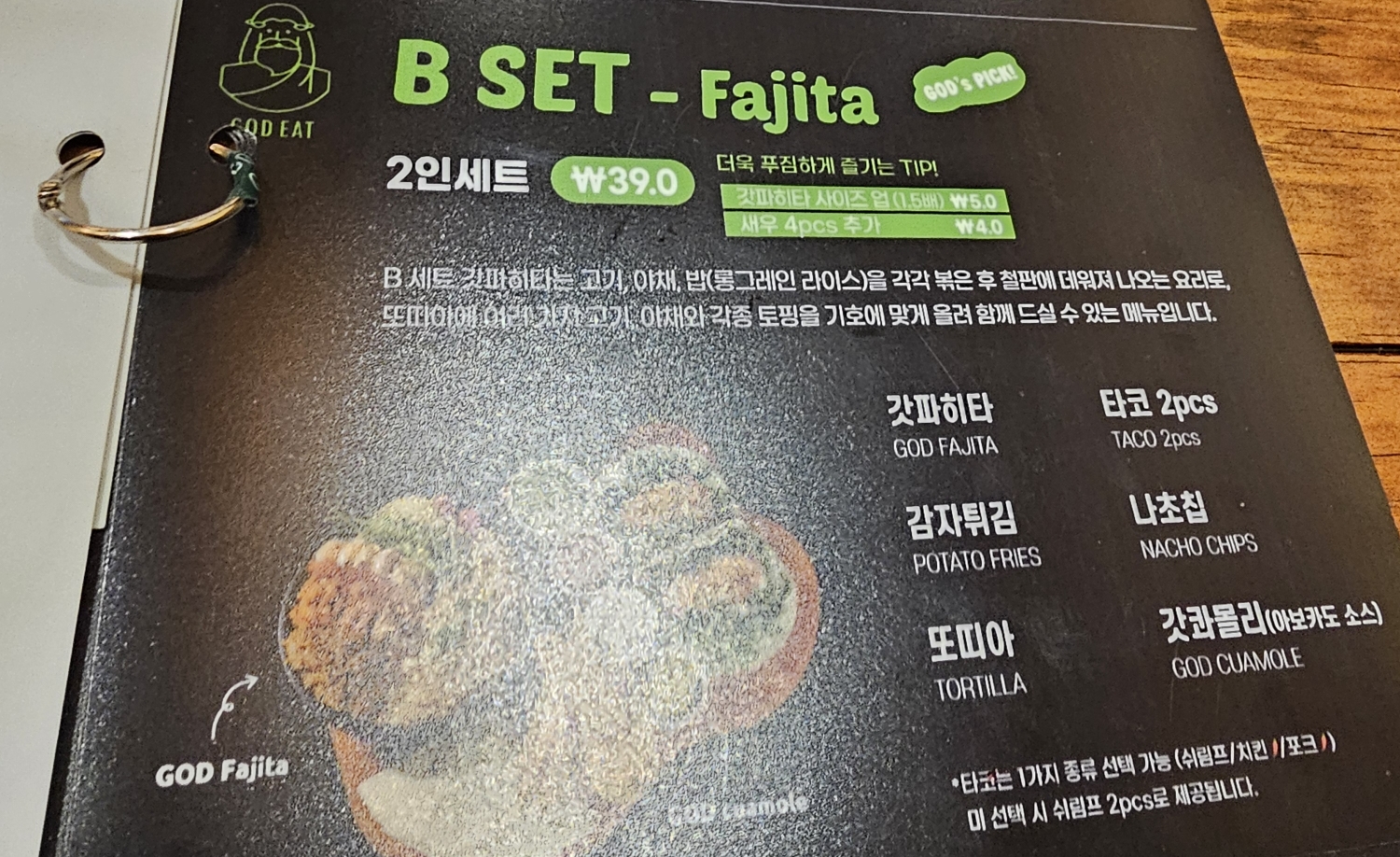 초월 멕시칸 음식점 갓잇 (GOD EAT) 갓잇 (GOD EAT) 메뉴