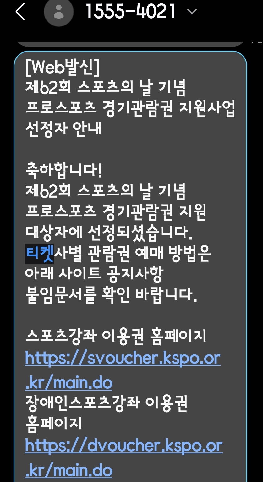 '스포츠의 날' - 스포츠 주간 관람권 '스포츠 주간 관람권'이 당첨되어