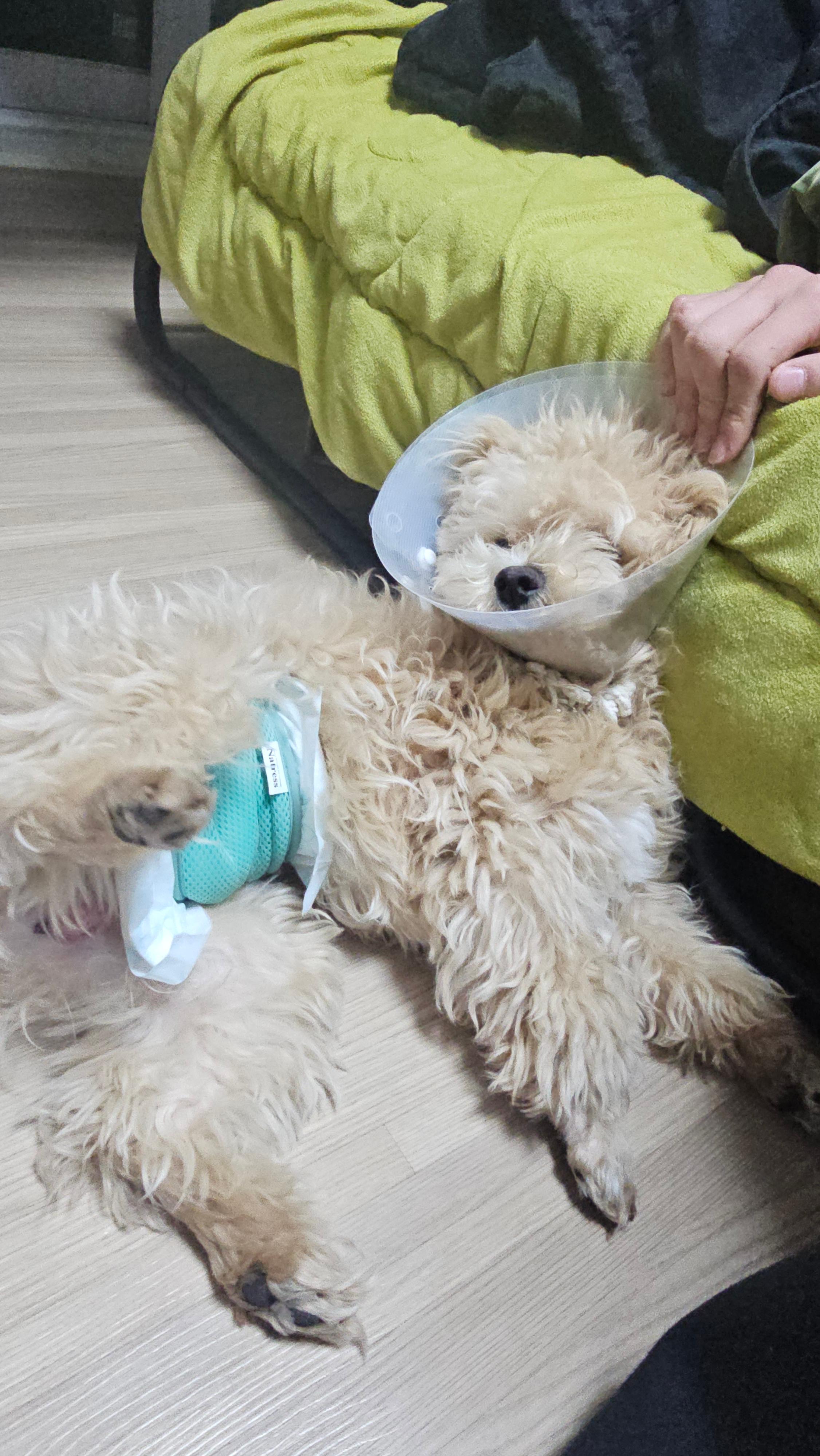 중성화 수술 후 아파하는 루이를 보니 하지 말껄 그랬나