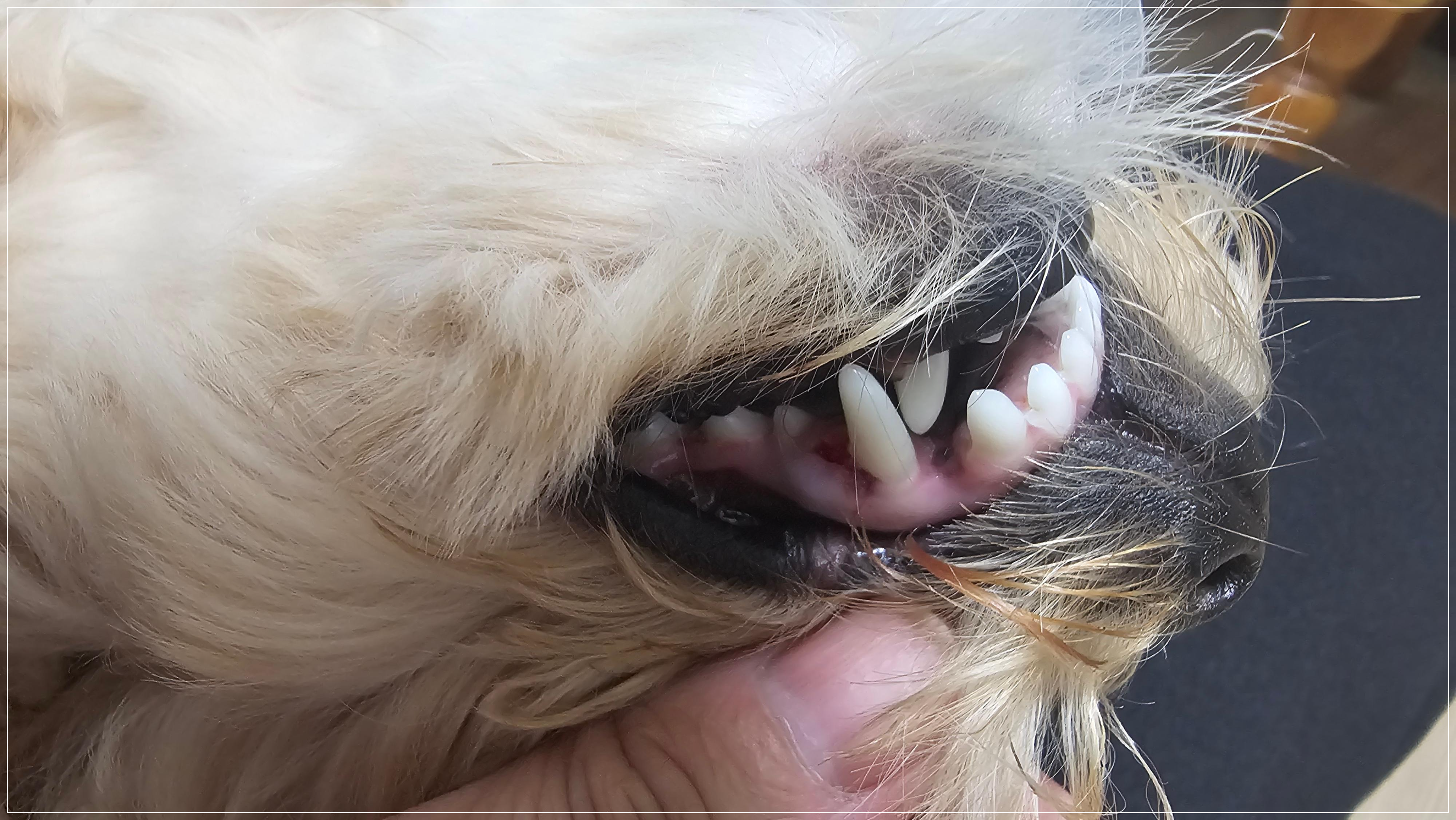 루이는 송곳니 유치가 빠지지 않아 송곳니가 위아래 두 개씩 있었는데,