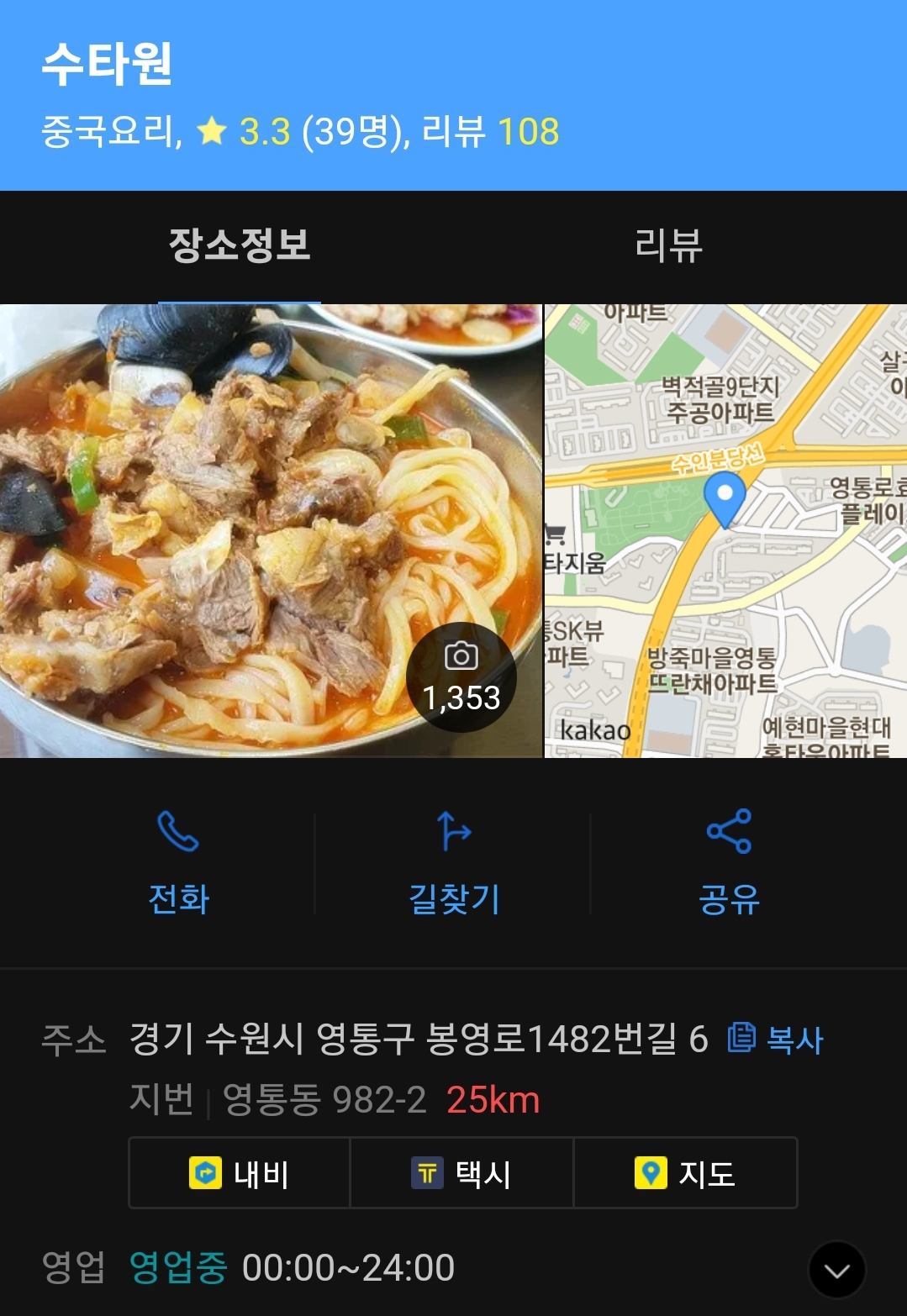 다음 검색 : 영통 수타원 [카카오맵] 수타원
