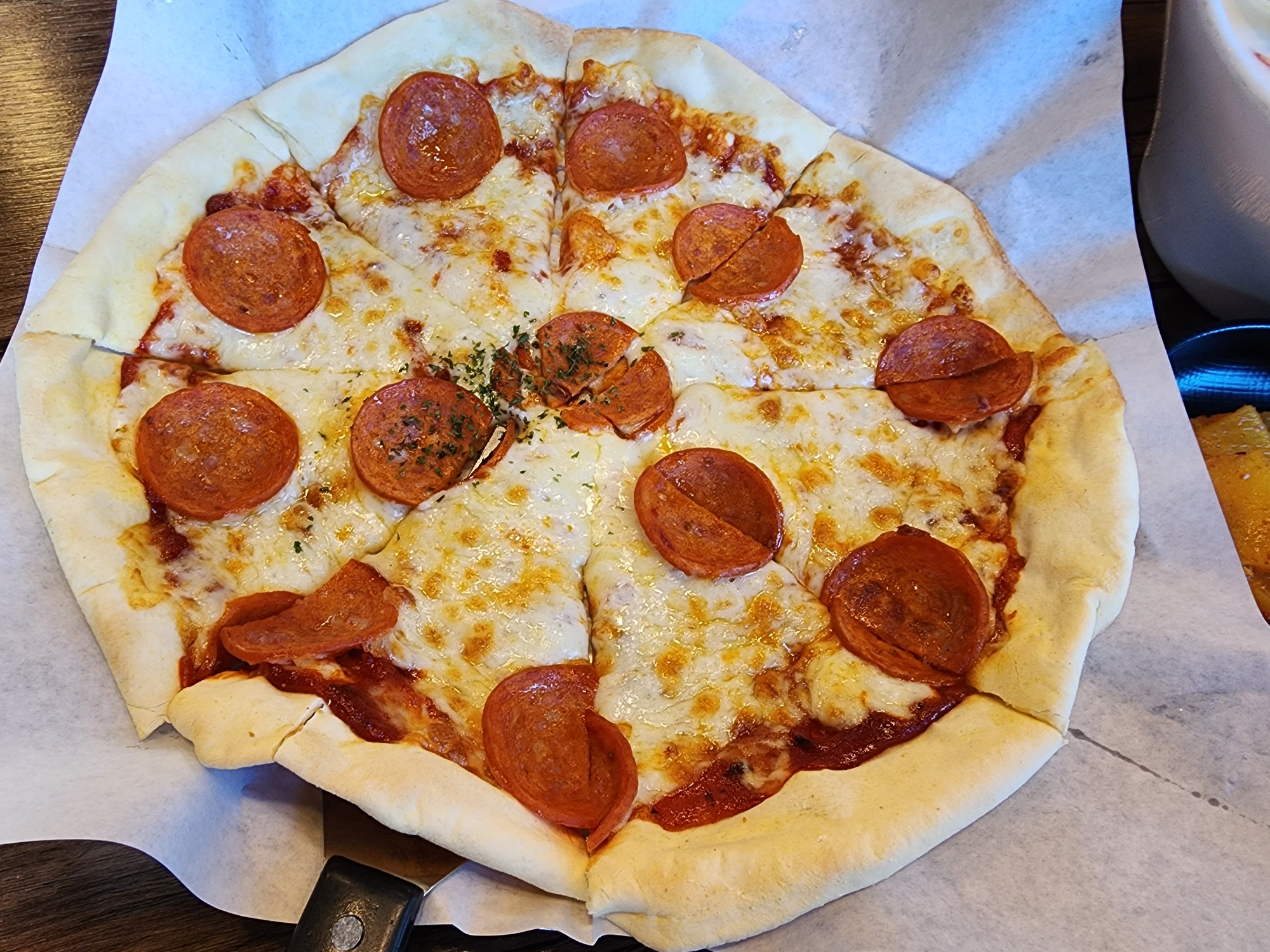 뽕담 페퍼로니 피자 얇은 씬 도우는 피자의 맛을