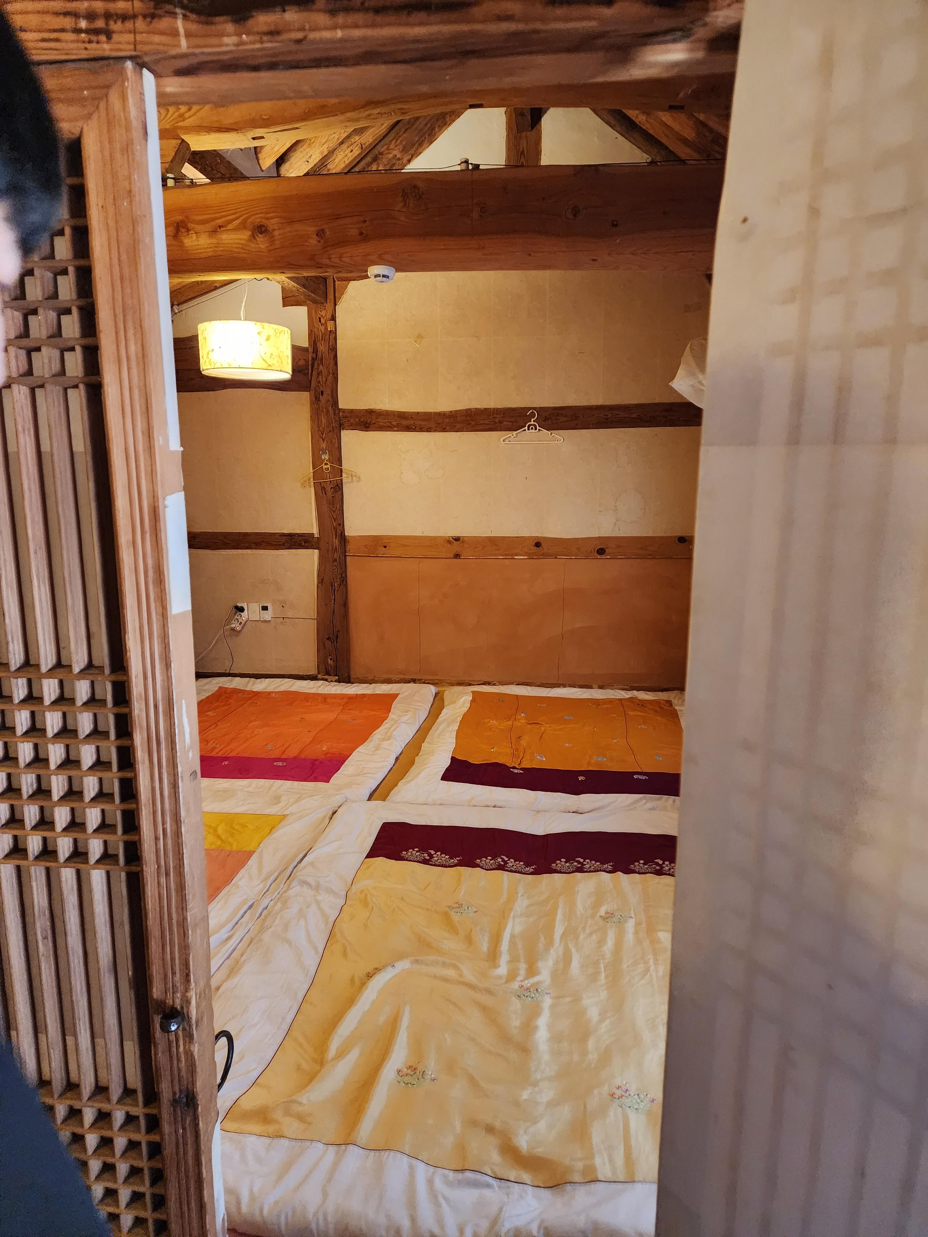 수오재 방 미리 이불을 깔아서 방을 데워주셨어요~