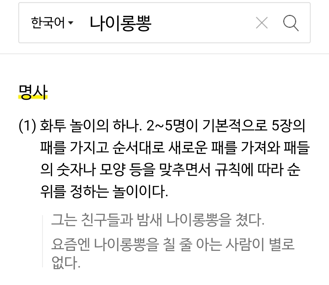 다음검색 : 나이롱 뽕 저희 가족은 모이면 나이롱 뽕을 해요.