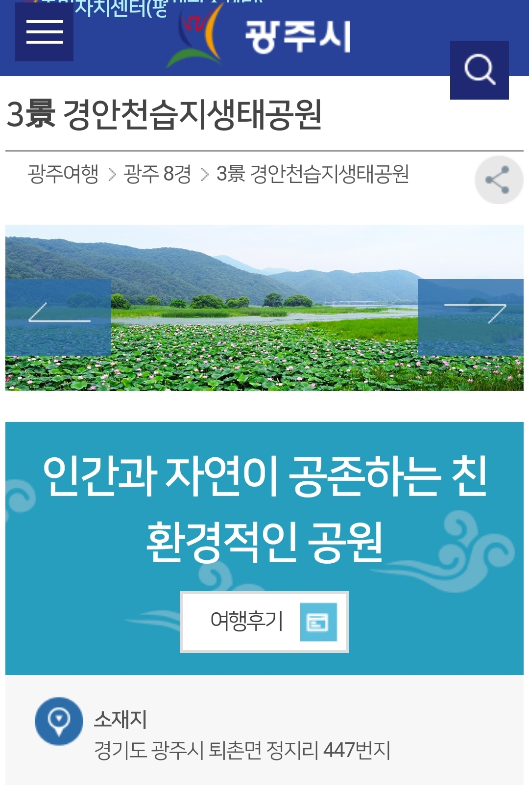 출처 : 광주시청 홈페이지 그 중 3경 경안천습지생태공원은