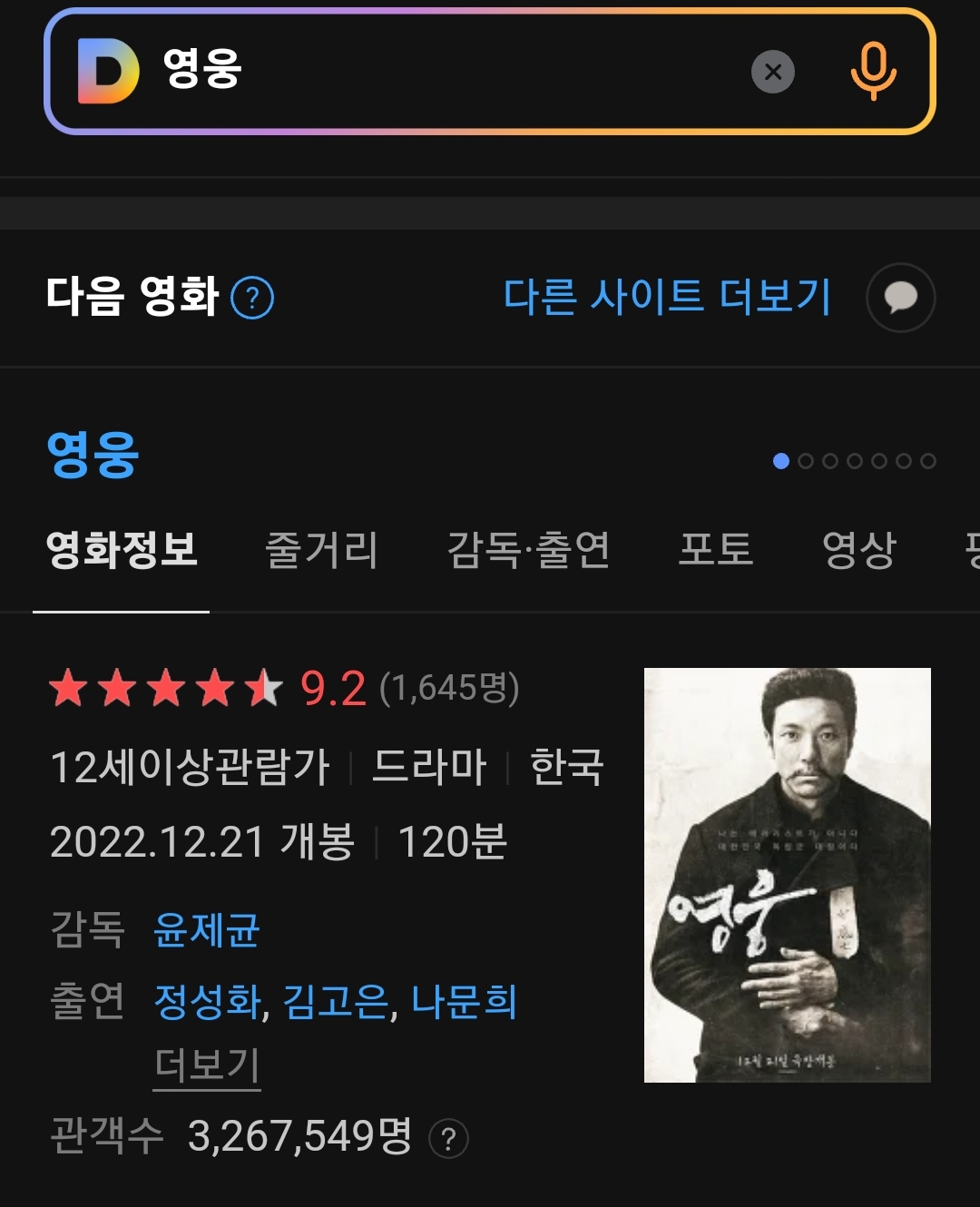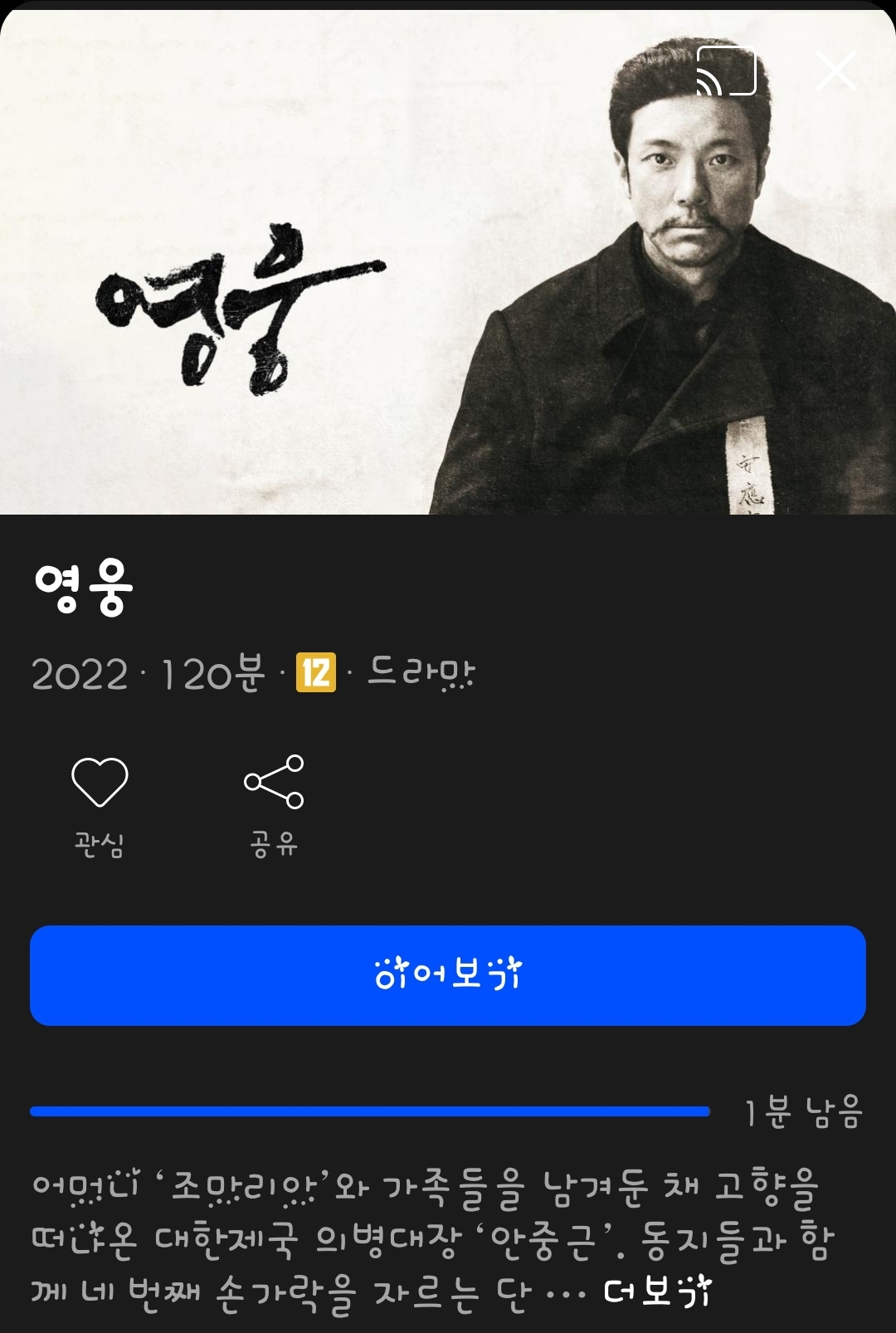 '영웅'을 봤어요.