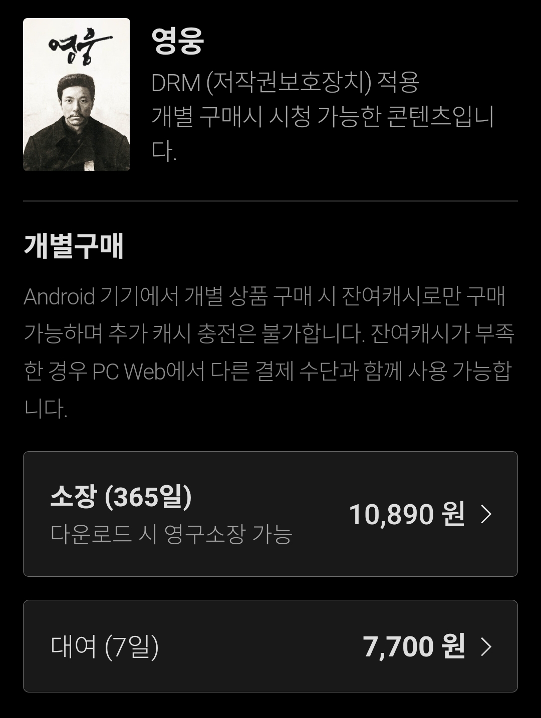 티빙 : '영웅' 결제창 줄거리