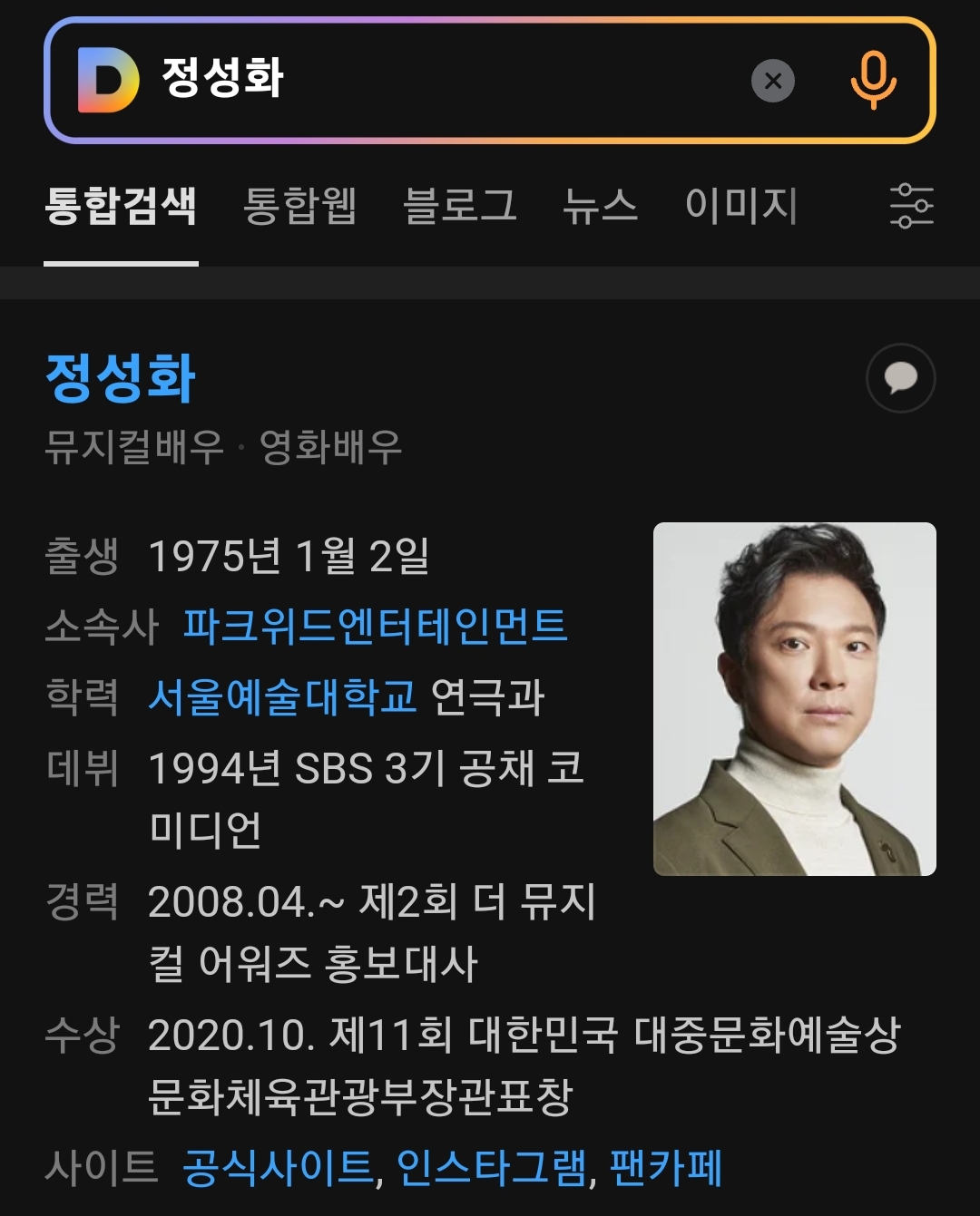 다음검색 : 정성화 정성화 배우!