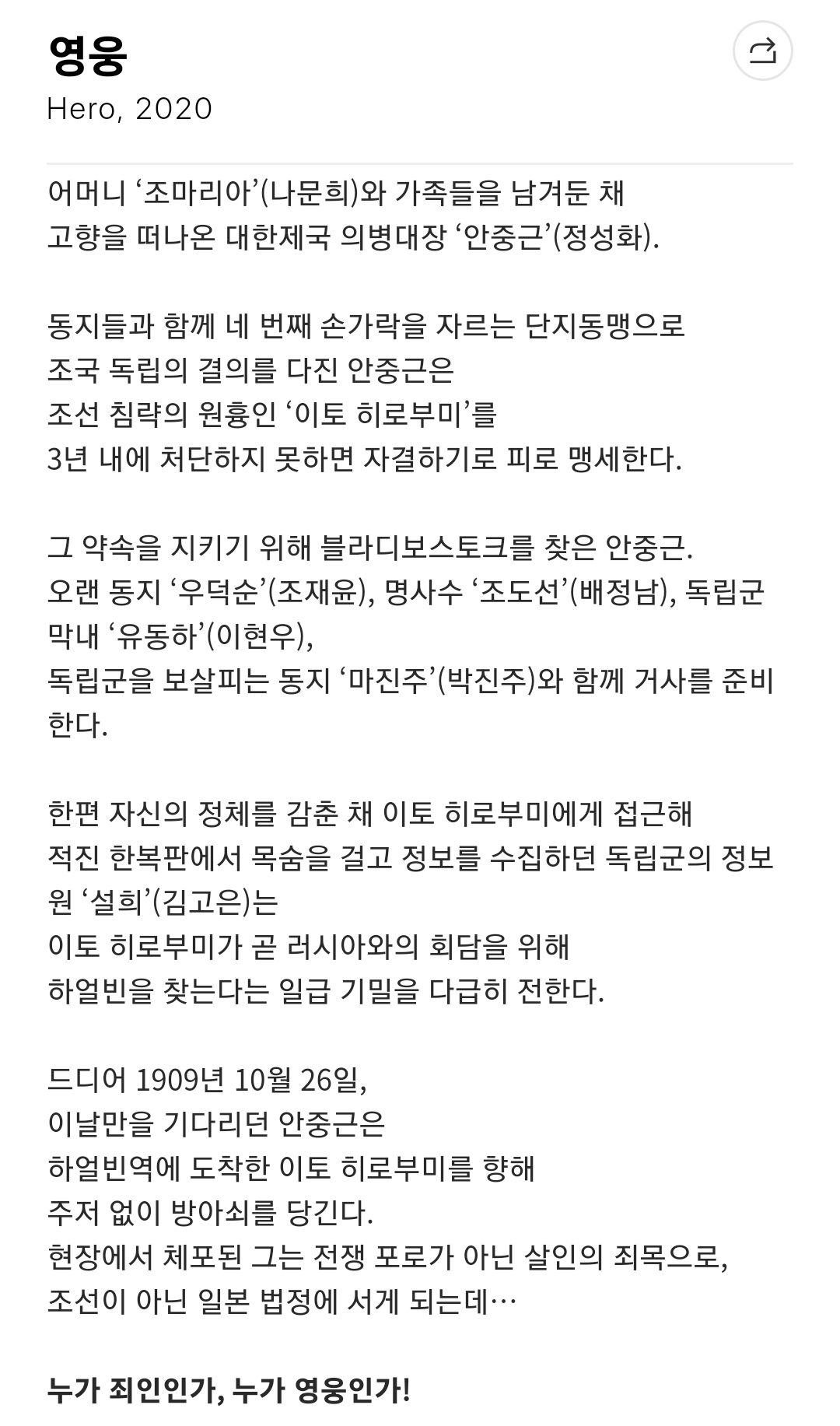 #영화영웅 #정성화 #영웅 #안중근 #안중근의사 #안중근의사어머니 #영웅ost728x90반응형LIST'movie and drama' 카테고리의 다른 글