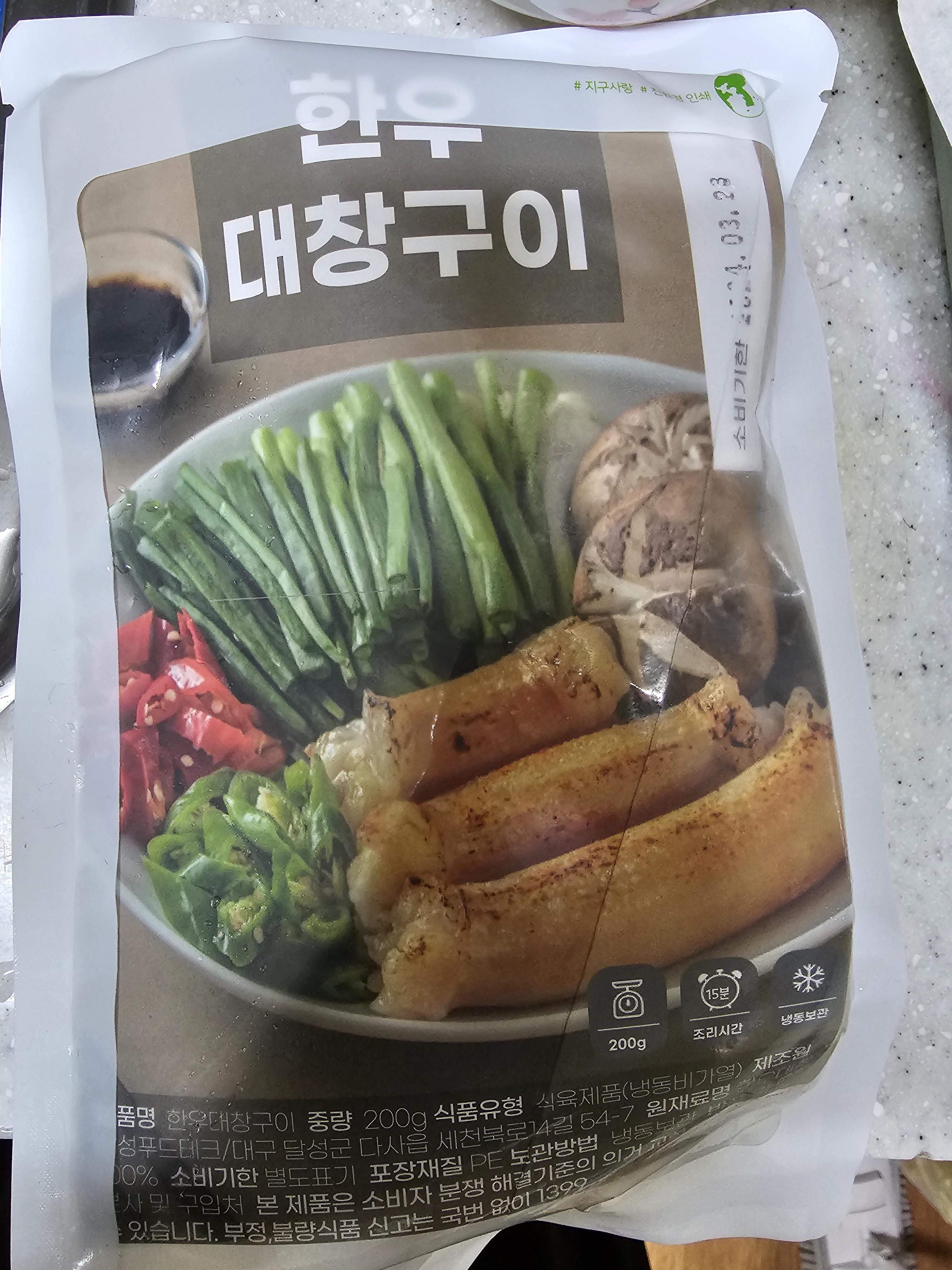 한우 통대창 구이 200g씩 포장이 되어있어요.