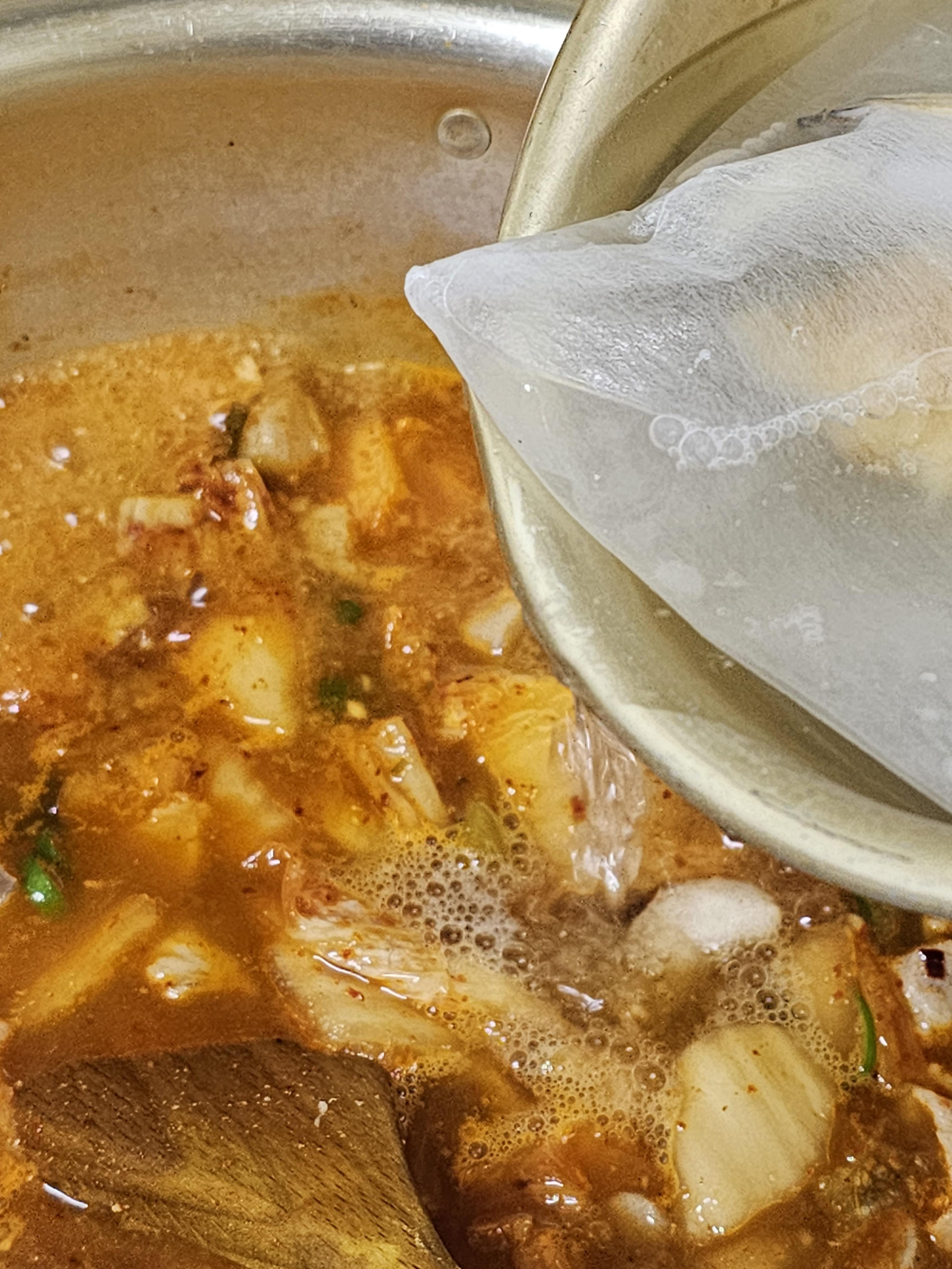 김치는 이렇게 세 번정도 넣어줬어요~