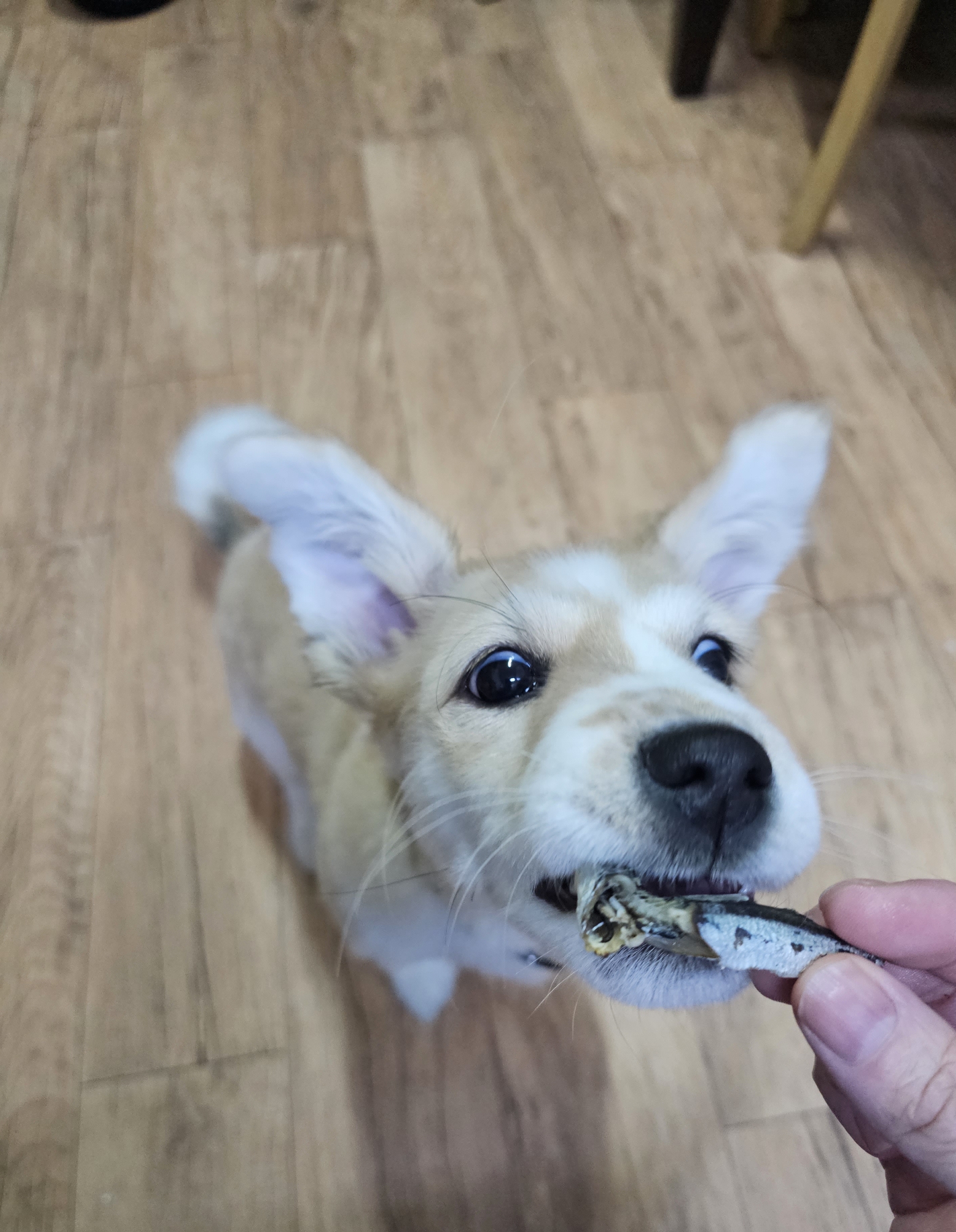 멸치먹는 강아지