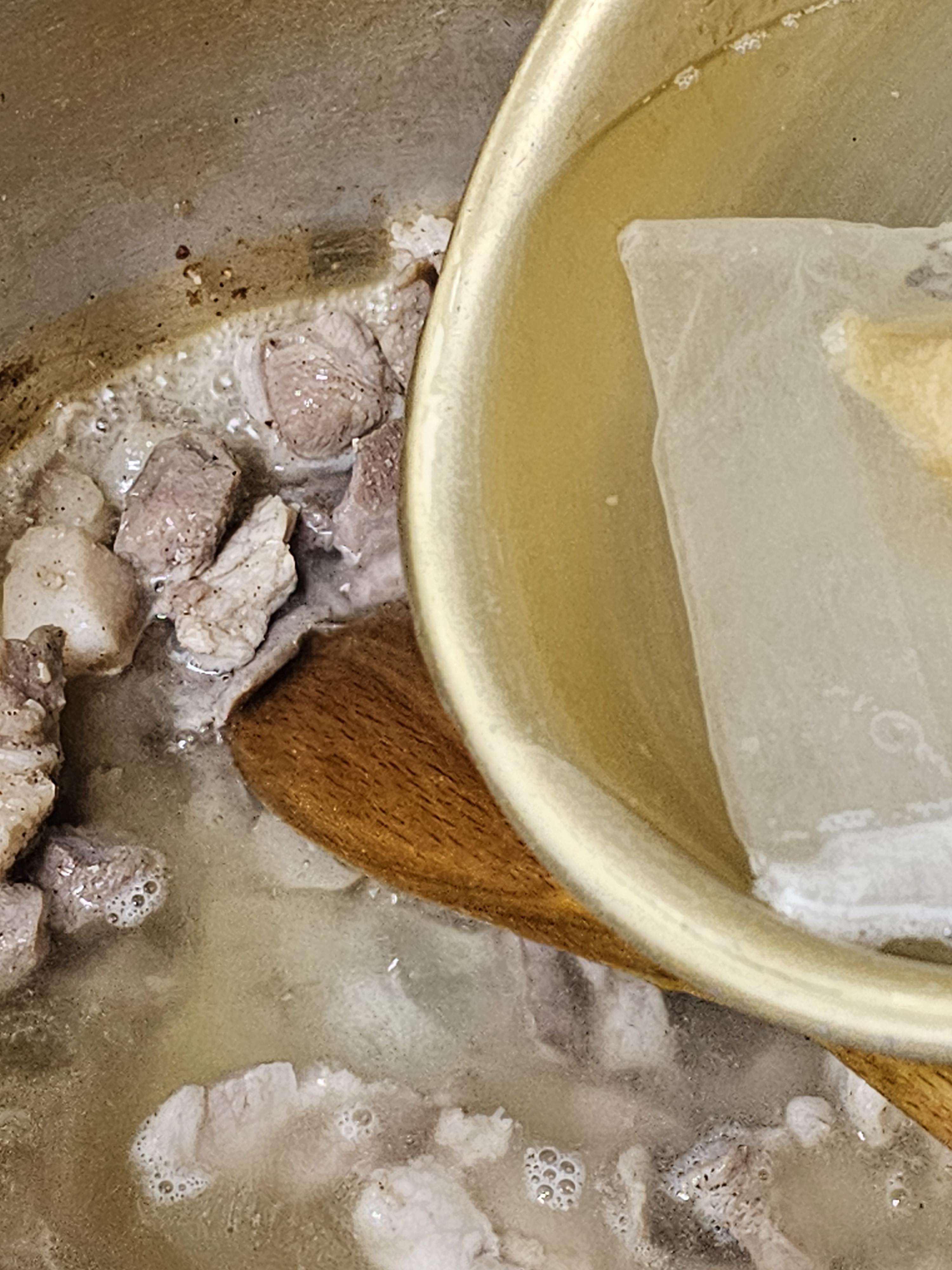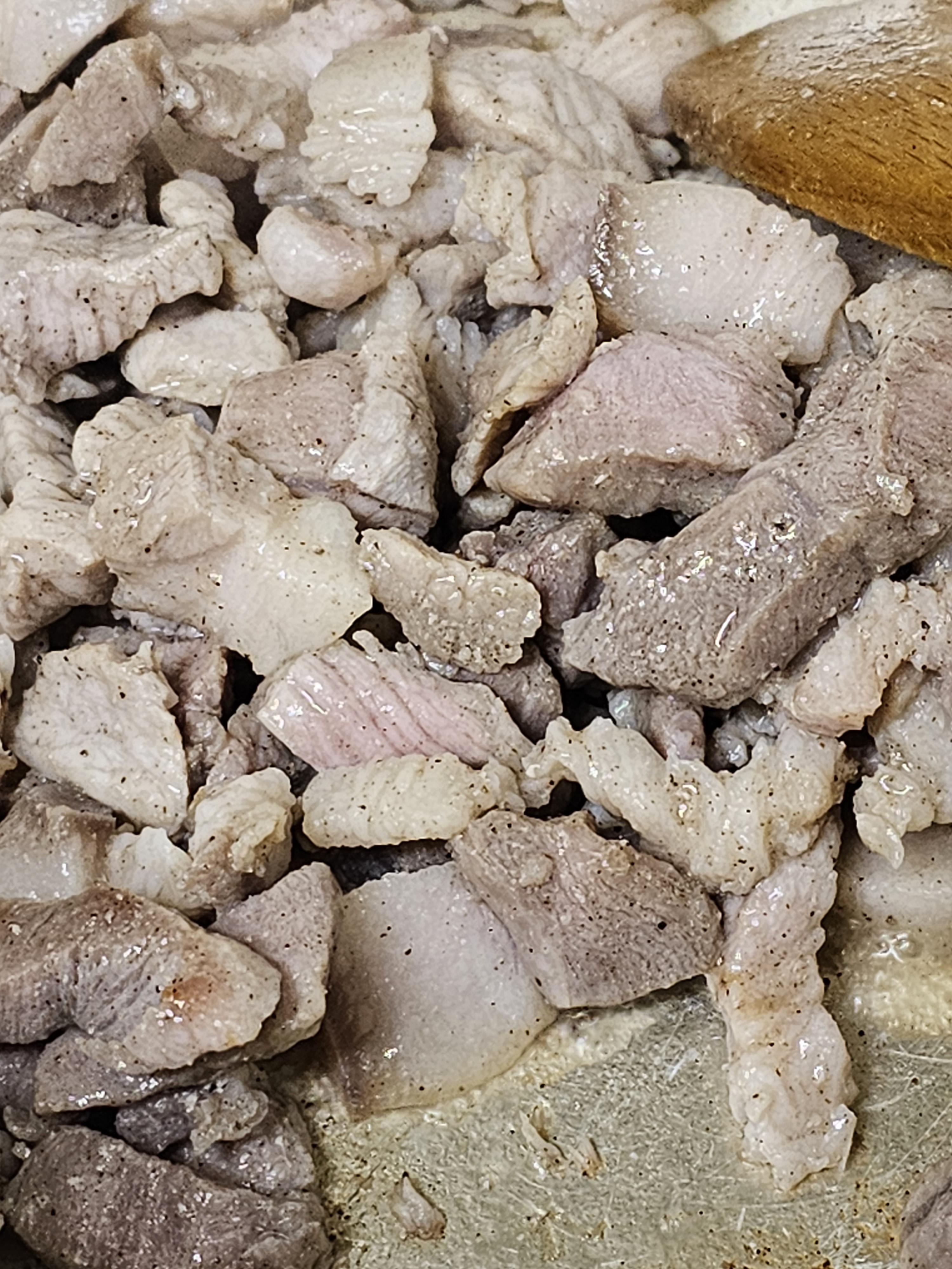 1. 먼저 고기를 볶는다.
