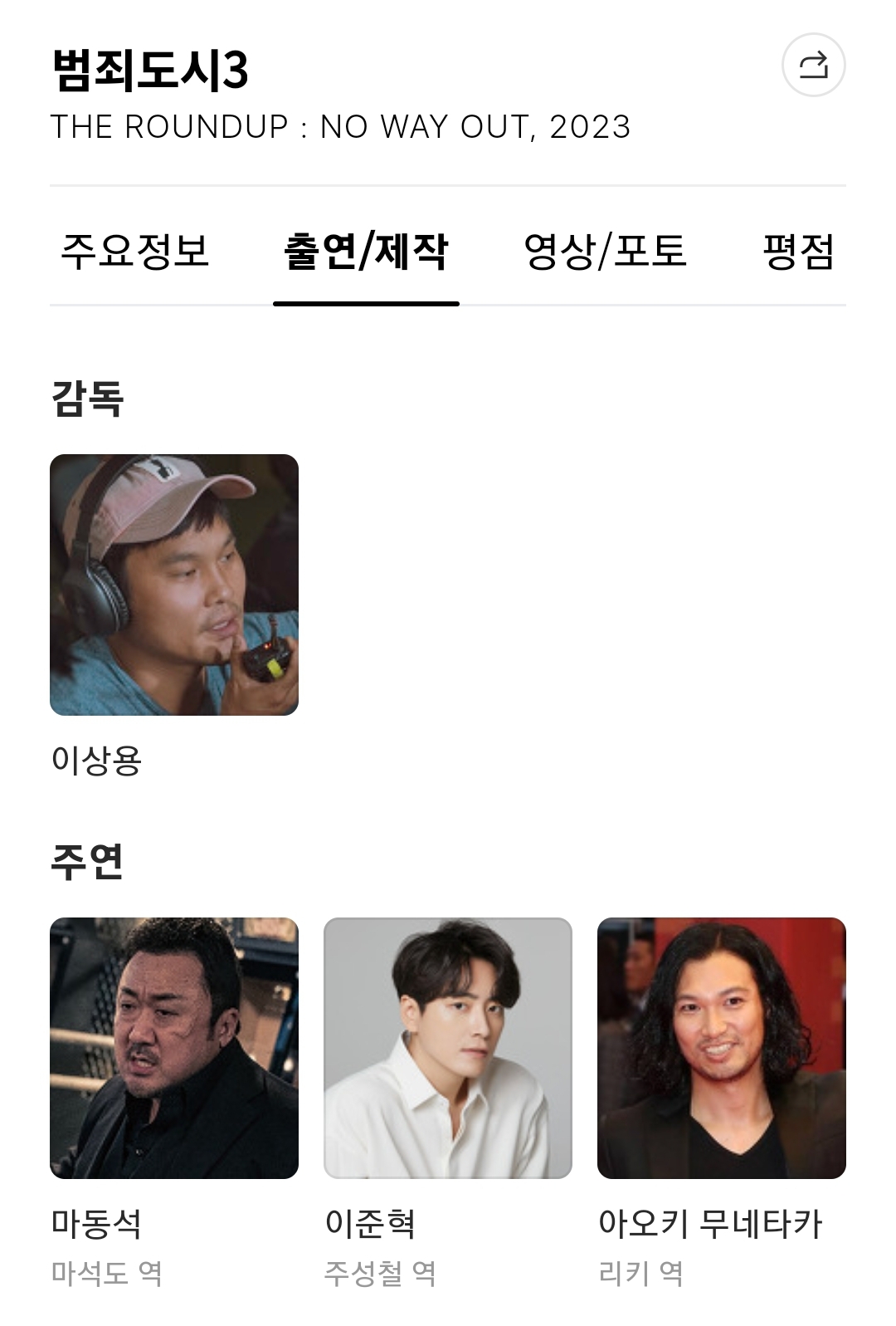 다음검색 : 범죄도시3 주연 배우는