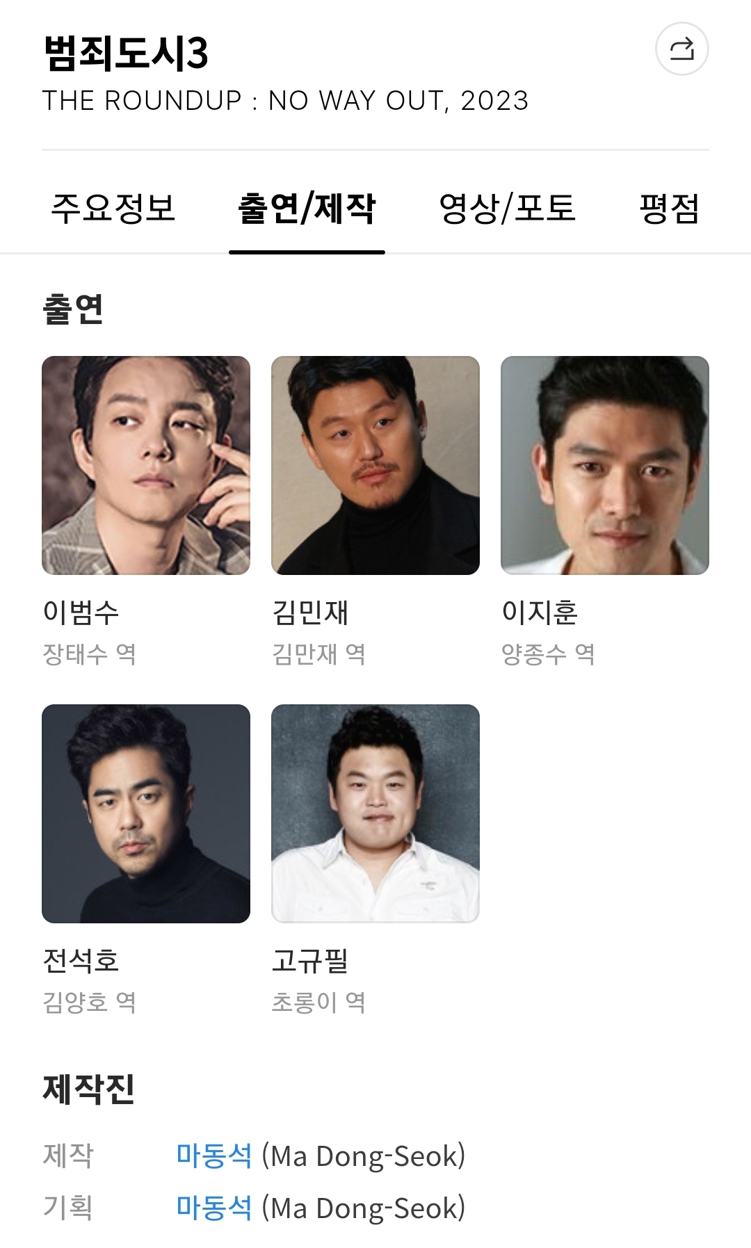 다음검색 : 범죄도시3 주연 배우는