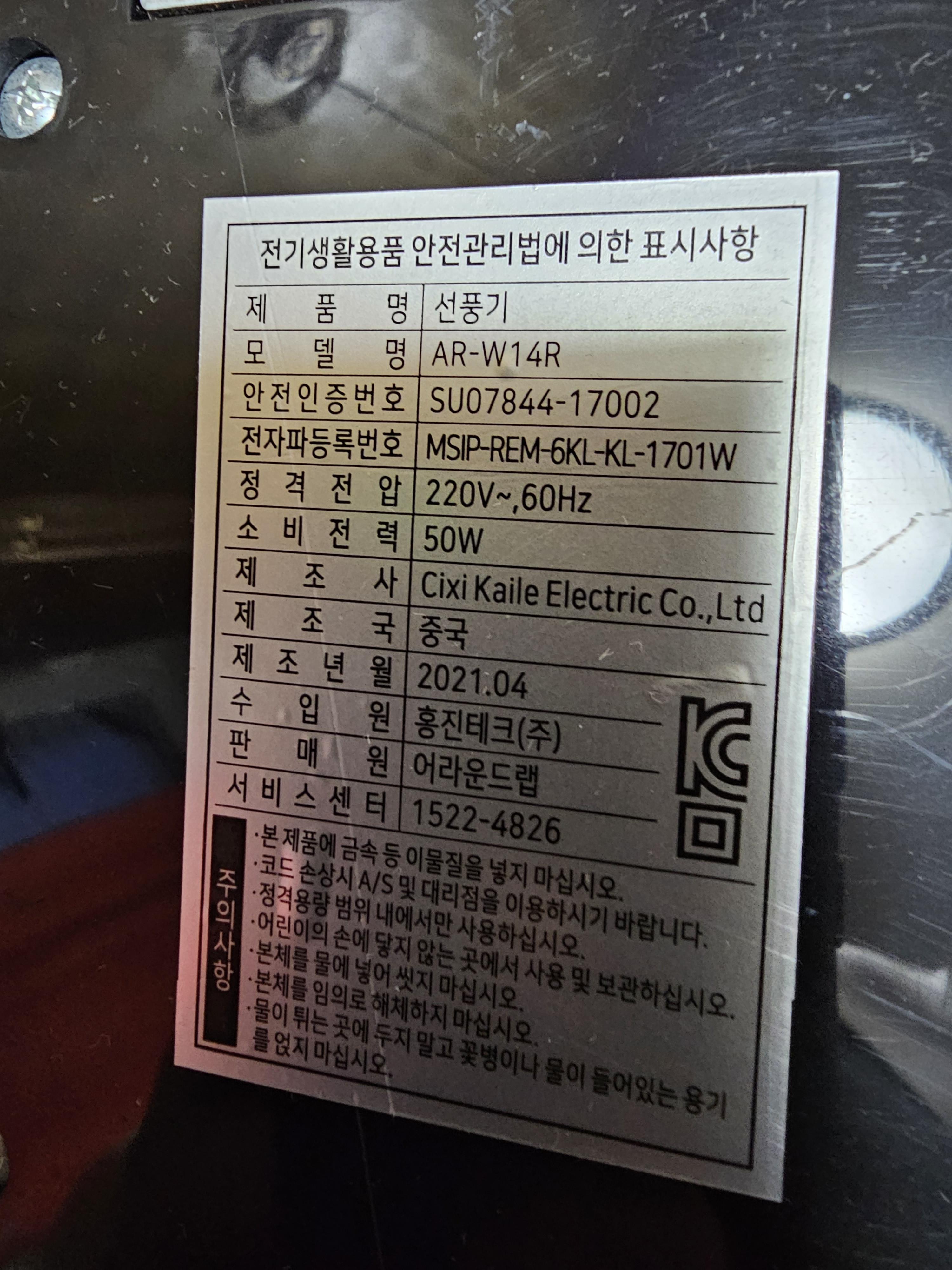 어라운드 벽걸이 서큘레이터 2021년 4월에 만들었군요. 😀