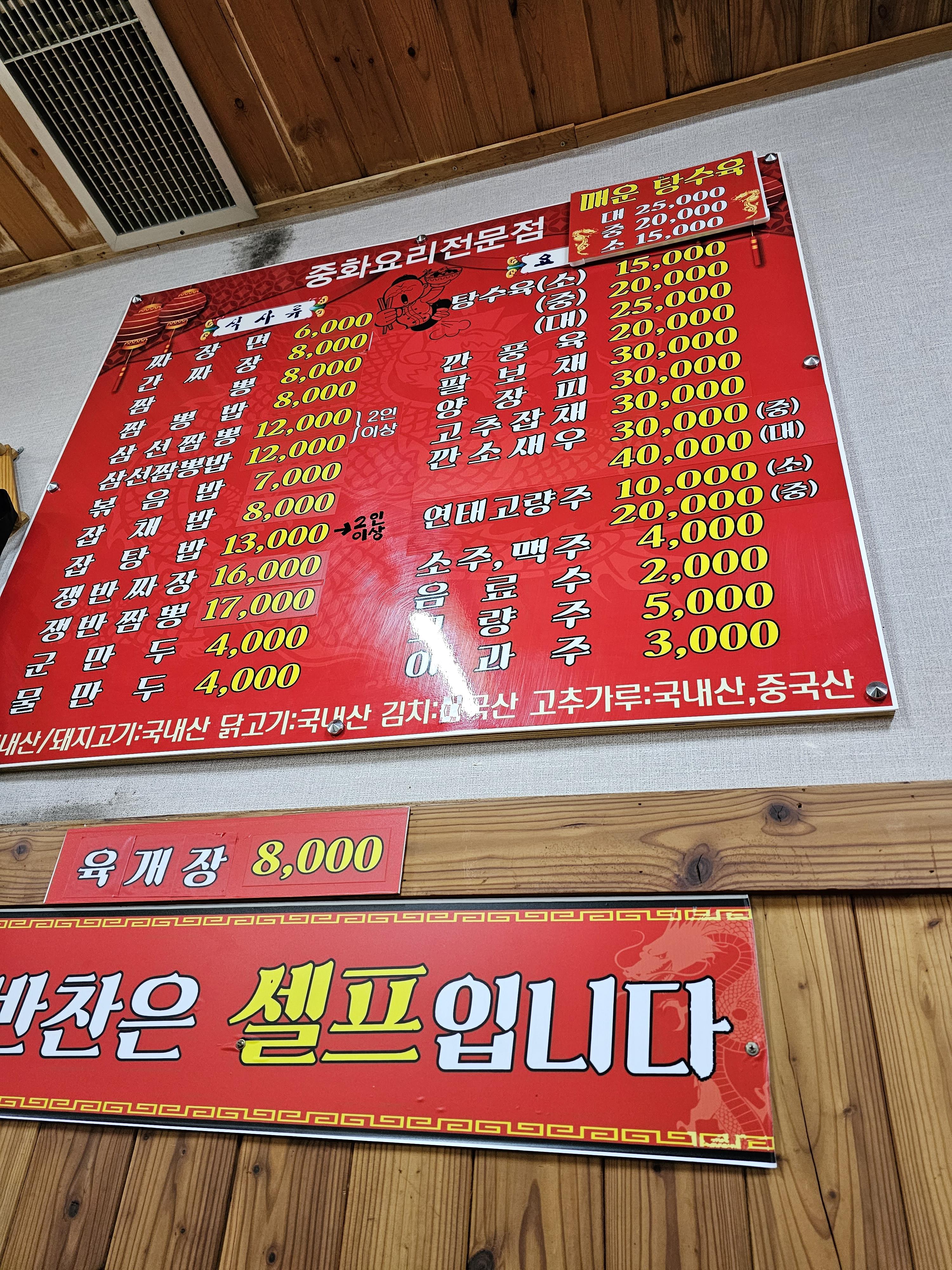 괴산 짜장면 맛집 미각루 메뉴판