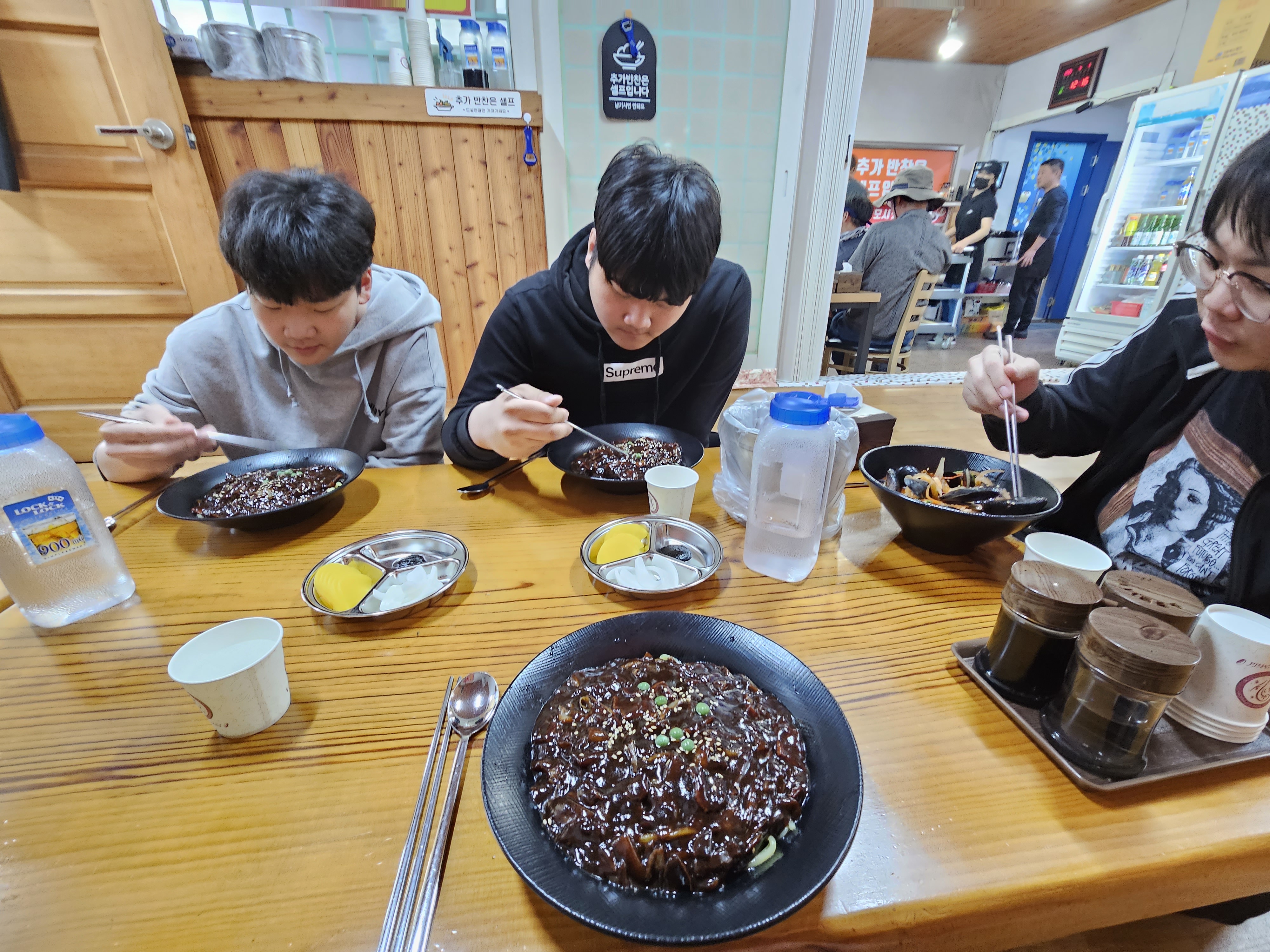 짜장면 기다리는 아들들.. 나왔다!