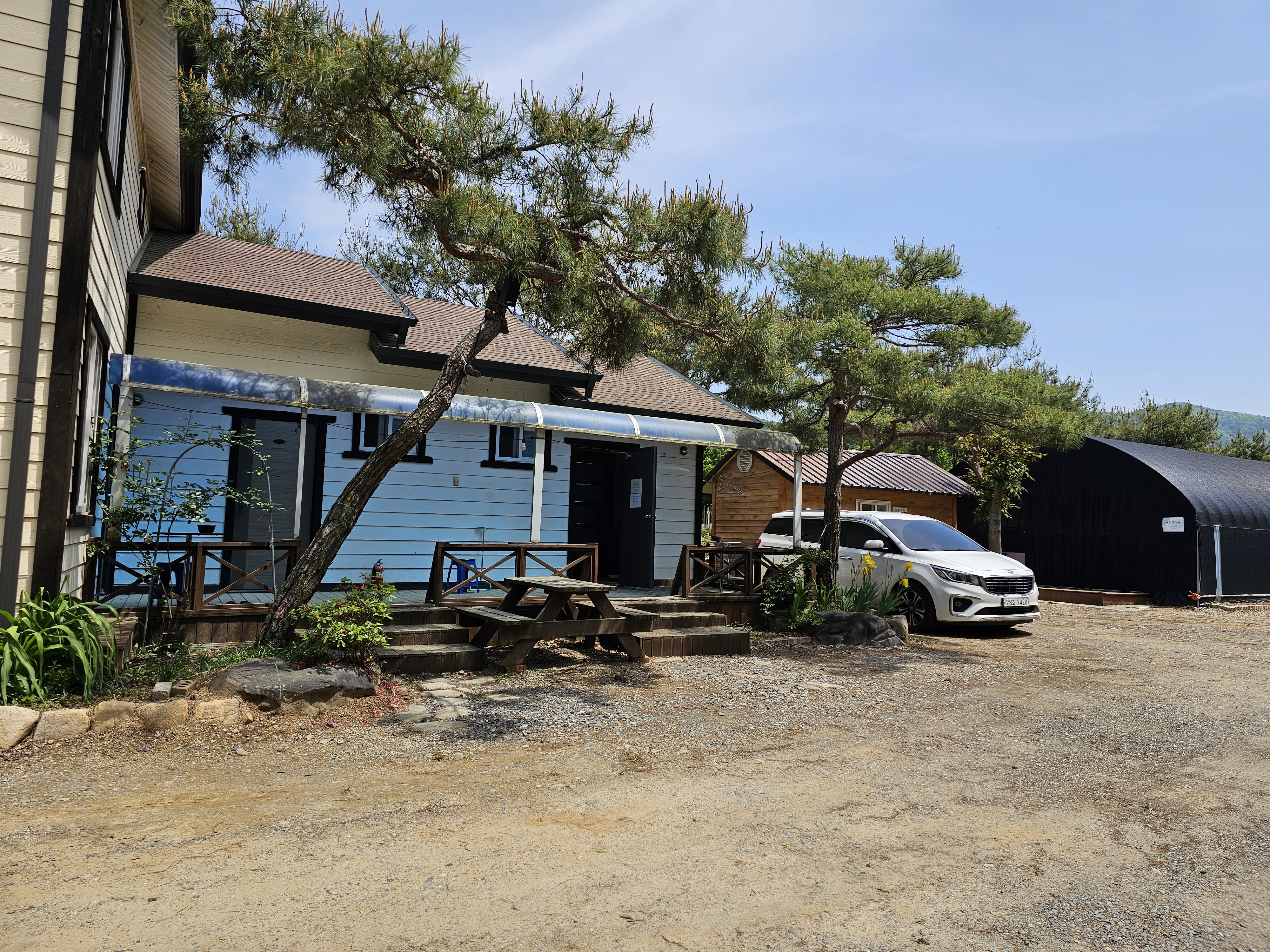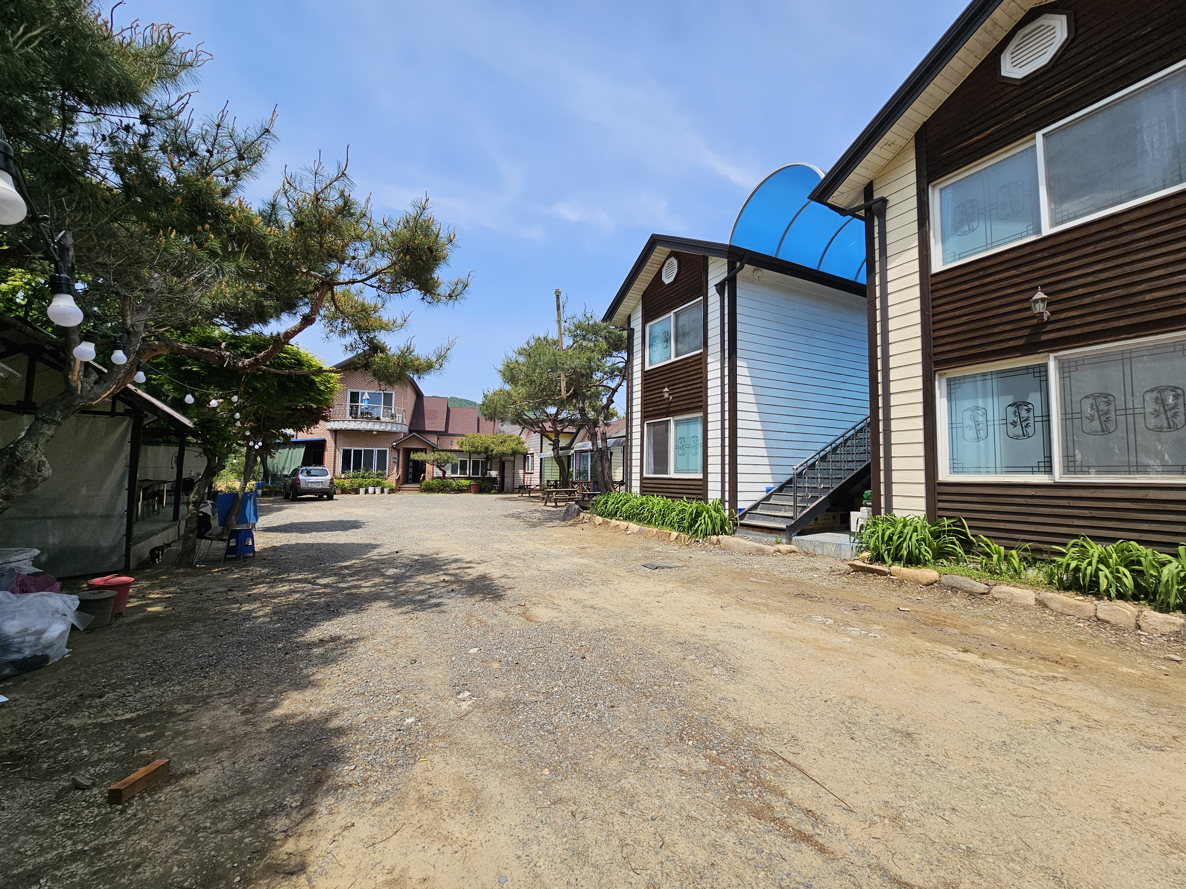 강가에 펜션 오잉? 의자와 파라솔은요?
