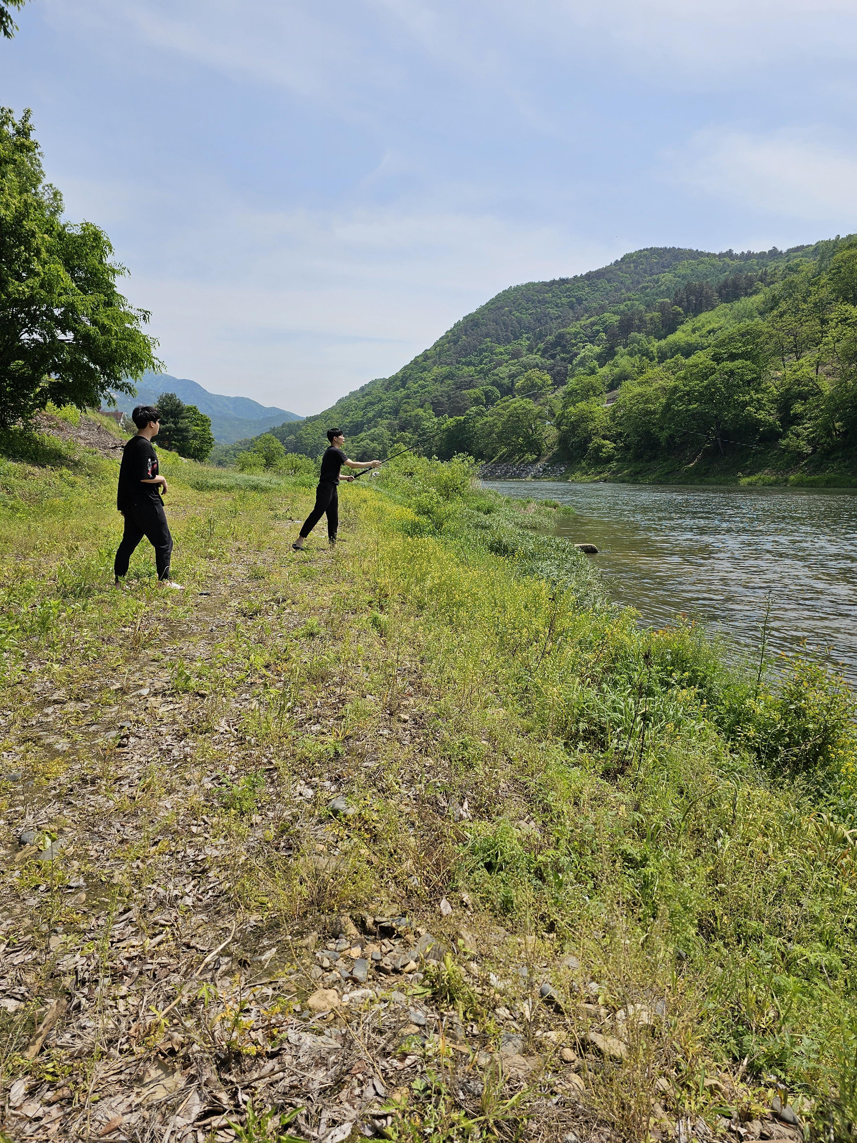 강가에 펜션 낚시